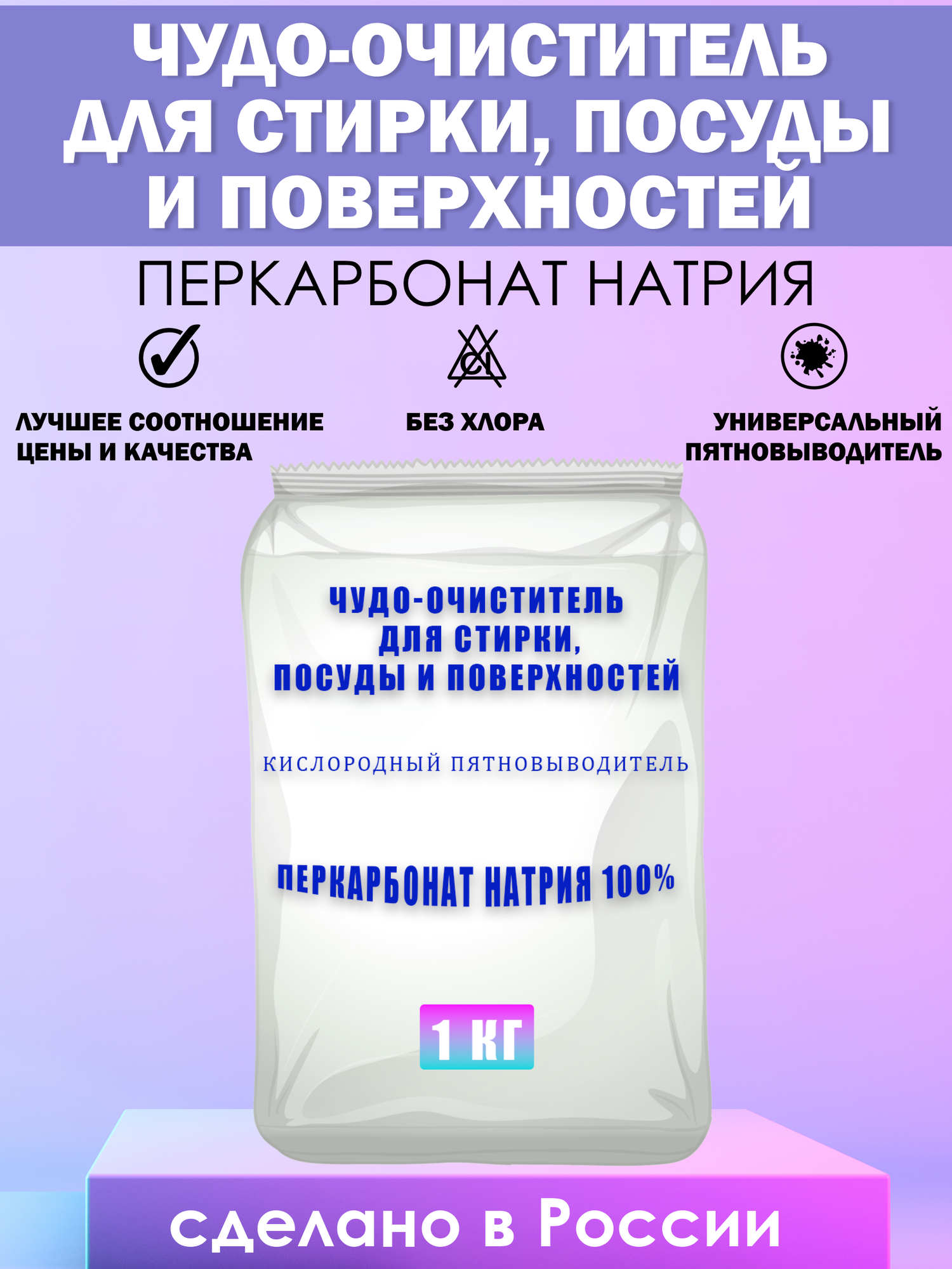 Кислородный отбеливатель, пятновыводитель, очиститель для стирки, посуды и поверхностей, Перкарбонат натрия 1кг интересное: