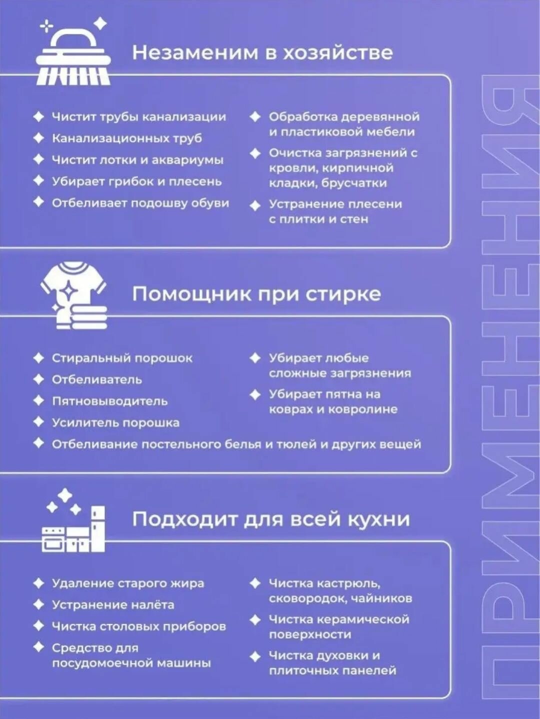 | Не содержит | аммиак / анионные ПАВ / искусственные красители / нефтепродукты / парабены / спирт / сульфаты / формальдегид |