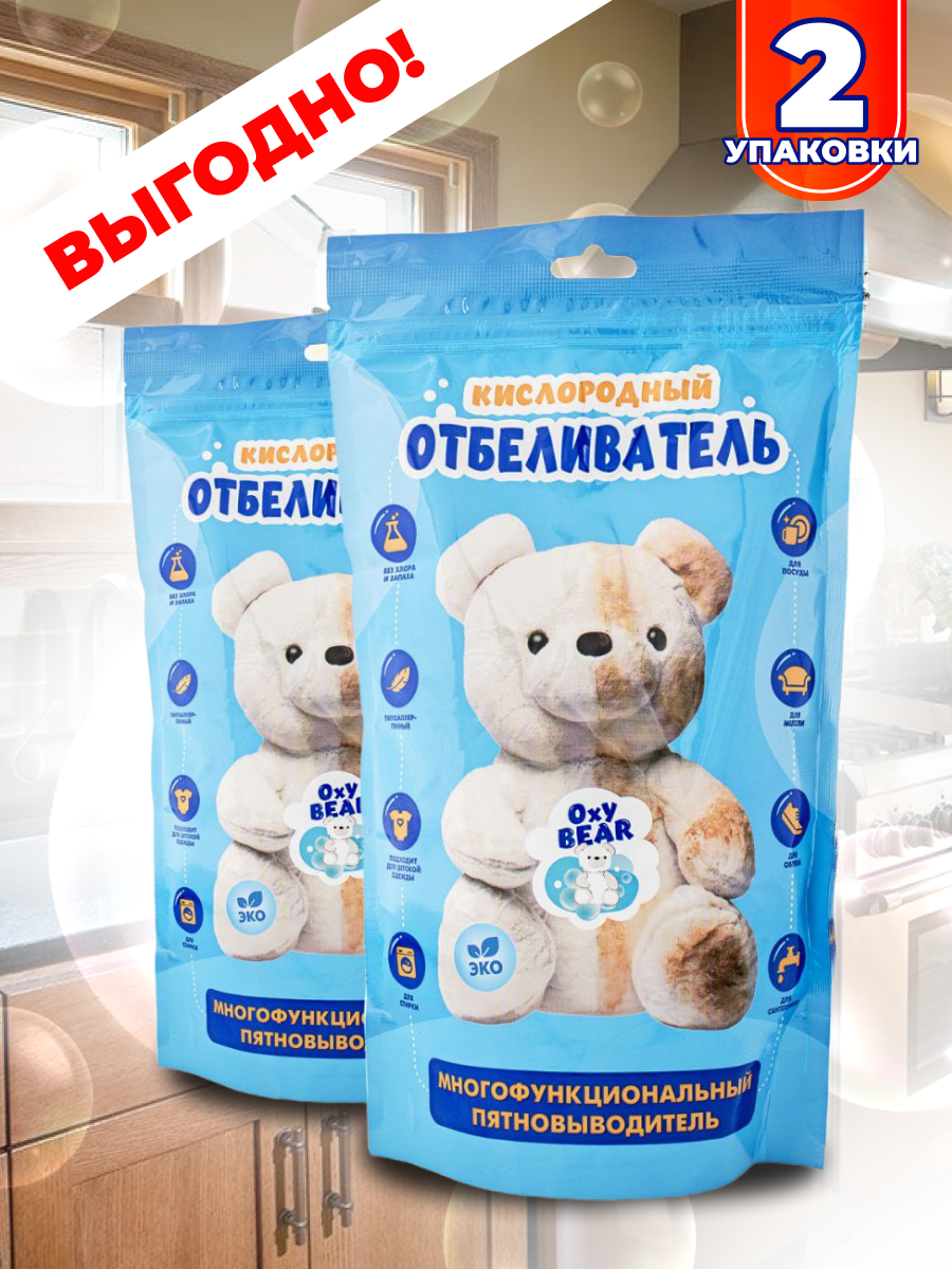 Пятновыводитель - отбеливатель кислородный универсальный OxyBear 1600гр интересное: