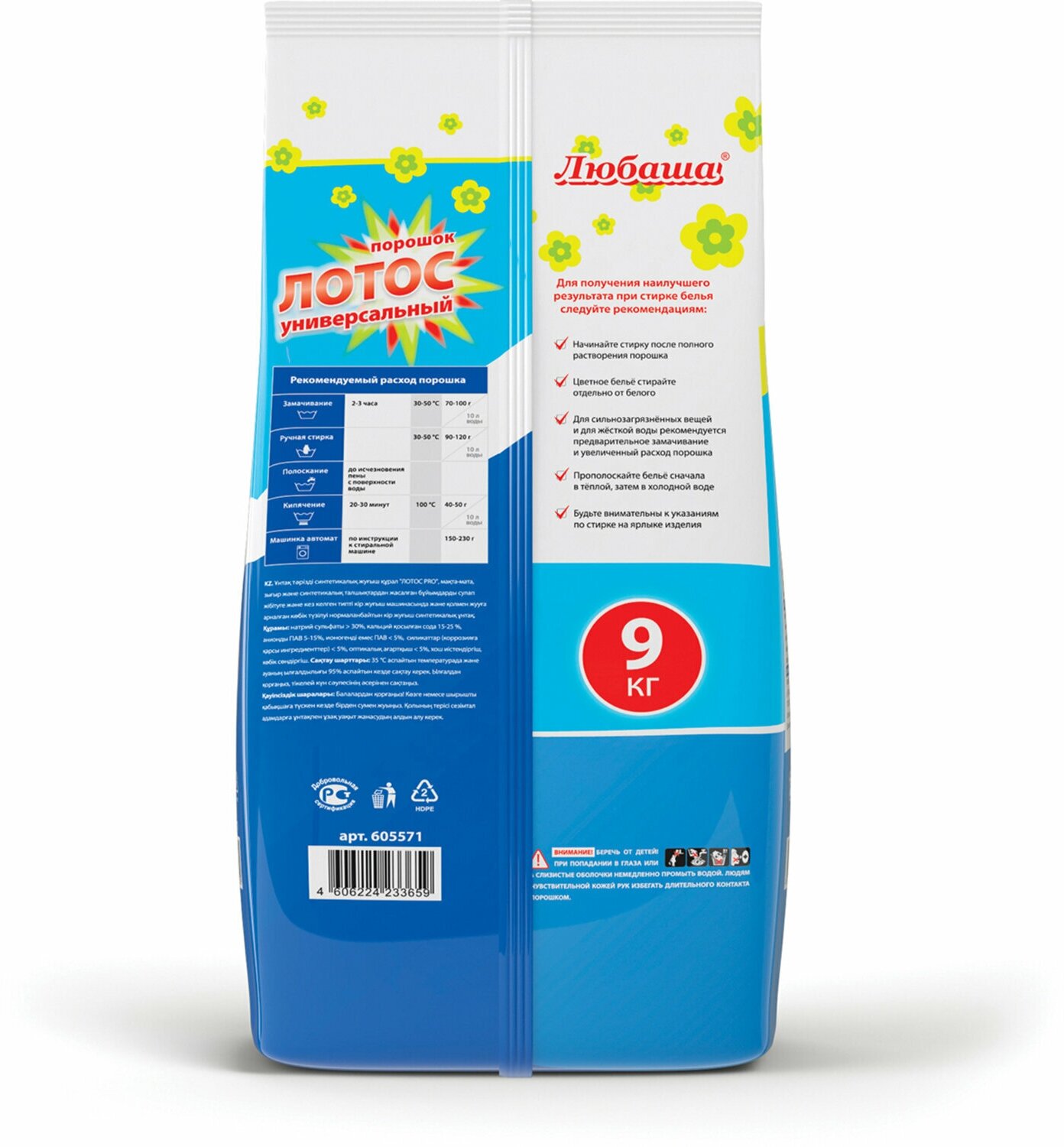 Купить Стиральный порошок автомат / для стирки белья 9 кг Любаша "Лотос", для всех типов тканей, 605571
