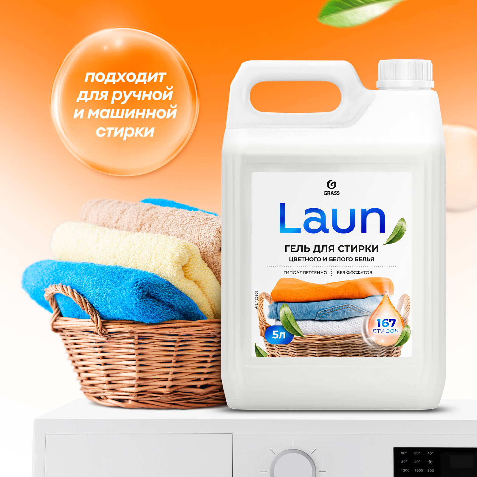Гель для стирки Grass цветного и белого белья концентрат Laun 5 л. интересное:
