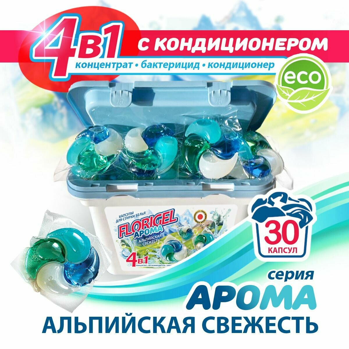 Капсулы для стирки белья 30 штук FLORIGEL " арома альпийская свежесть" интересное: