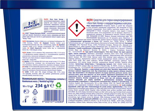 Капсулы для стирки Лоск Color 18 шт, гель, Сербия