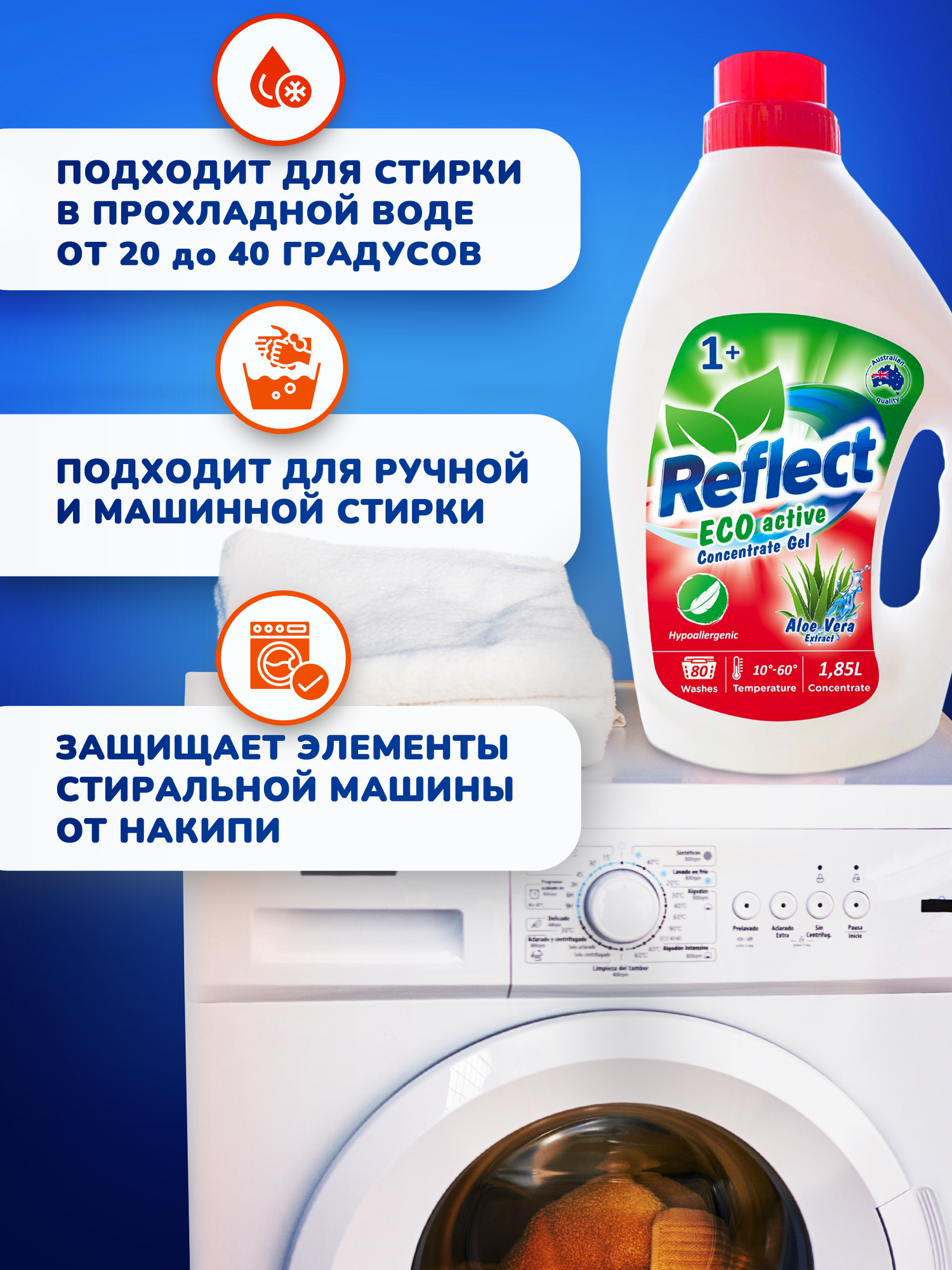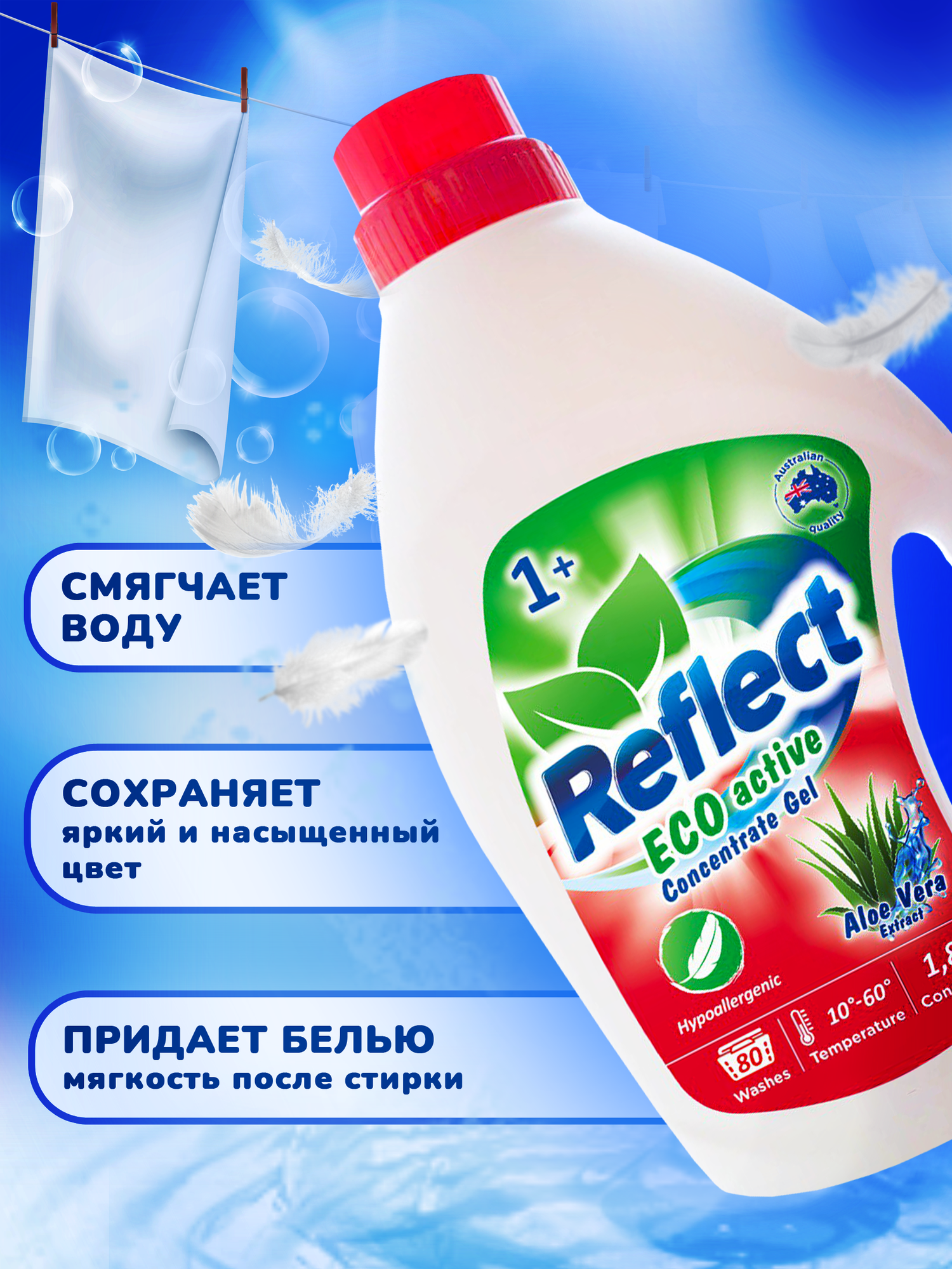 Гель для стирки Reflect ECO с алоэ вера 3,7л 160 стирок интересное: