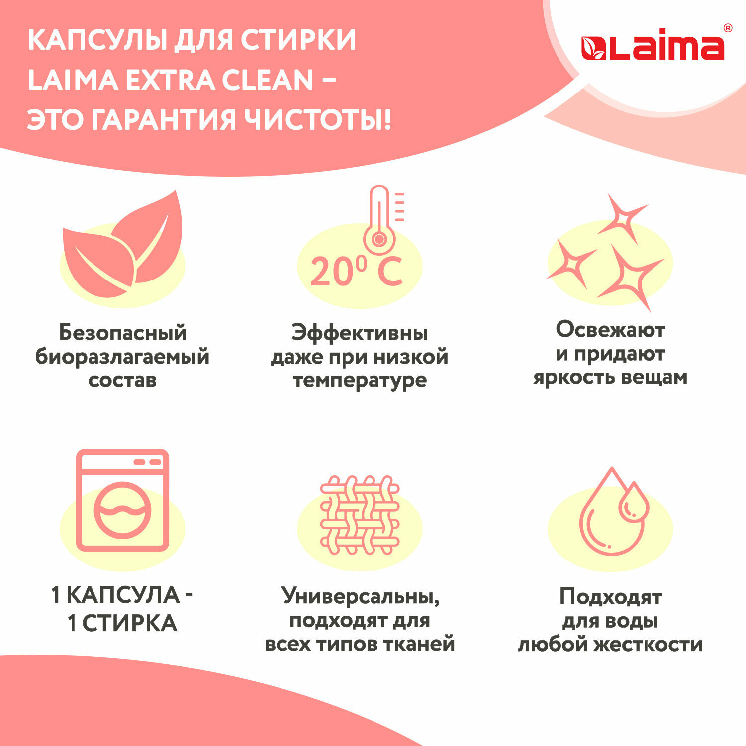 | Особенности | антибактериальное / безопасно для детей / биоразлагаемое / концентрат / растворимая оболочка / стирка при любой температуре |