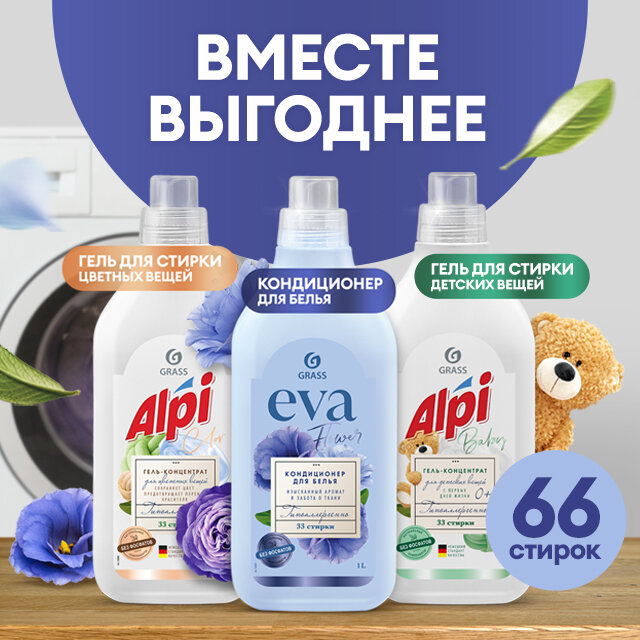 Купить Гель-концентрат для стирки Grass ALPI Color 1л.+Grass ALPI Baby 1л.+кондиционер для белья EVA Flower коцентрат 1л.