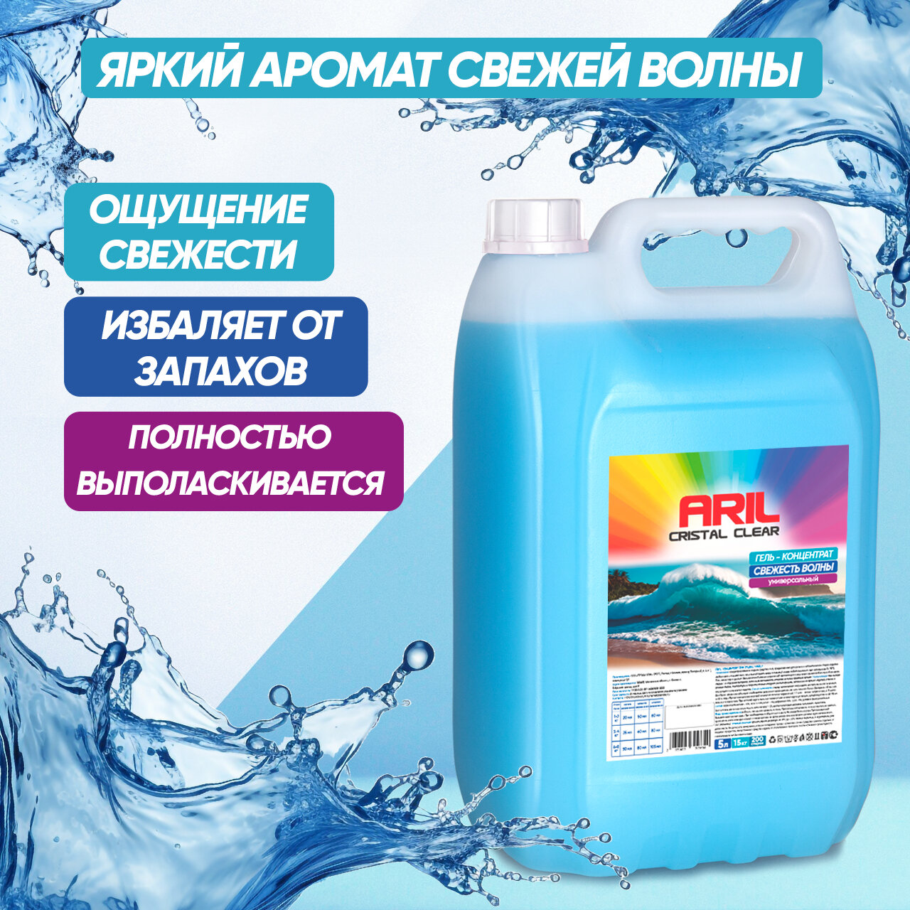 Гель для стирки ARIL 5 литров Жидкий порошок универсальный Свежесть волны / Средство для стирки интересное: