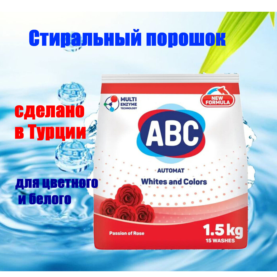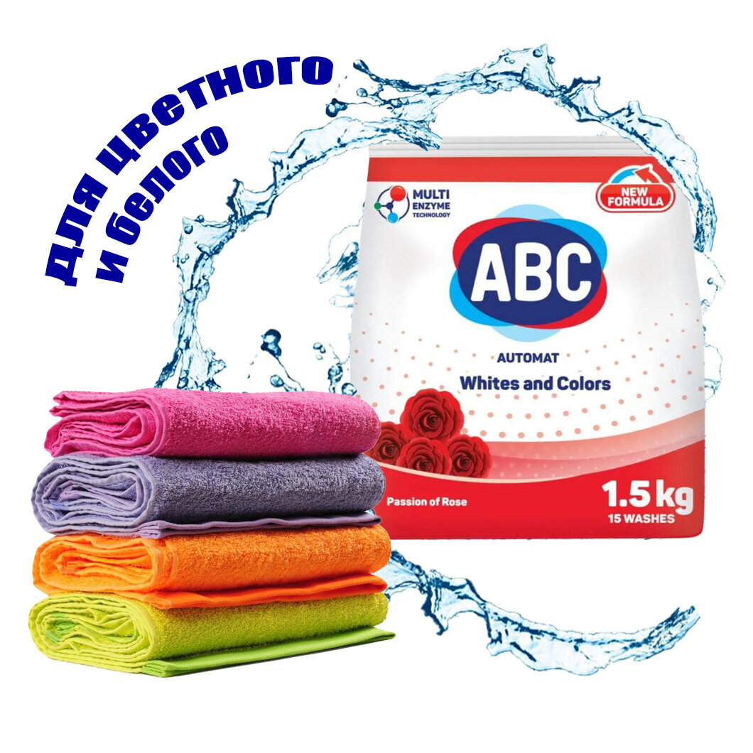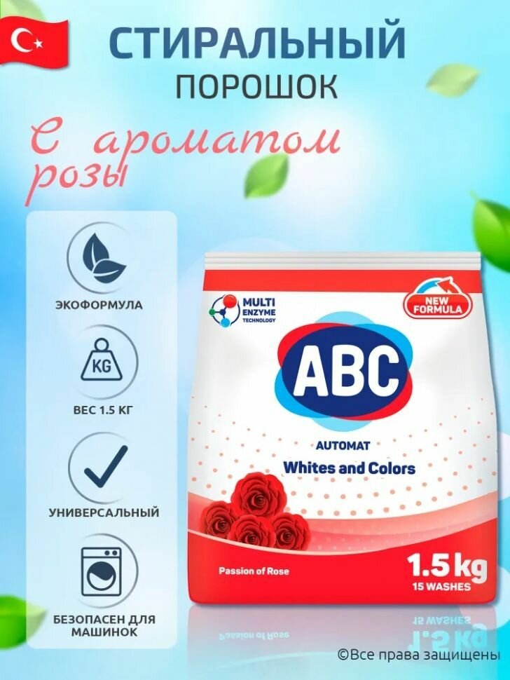 Стиральный порошок ABC "Роза страсти", для цветных тканей, 1.5 кг