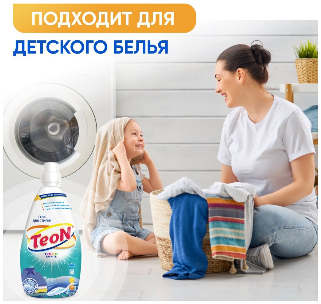 Гель для стирки Teon Color&White 1,9 л бесфосфатный интересное: