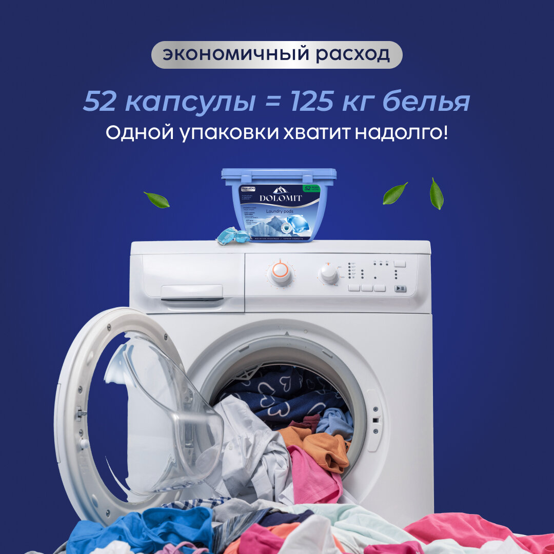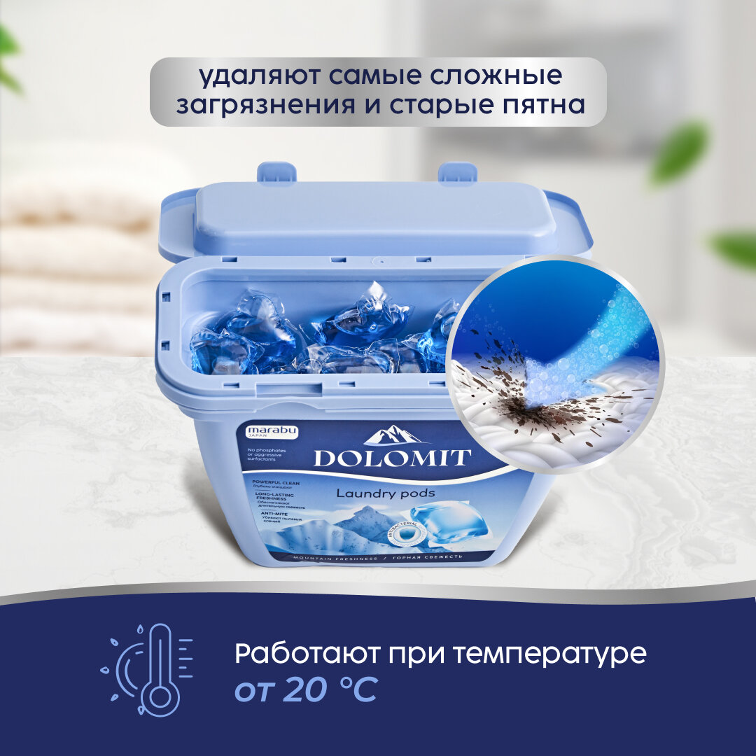 Капсулы для стирки белья универсальные MARABU серия DOLOMIT "горная свежесть", 52 капсулы интересное: