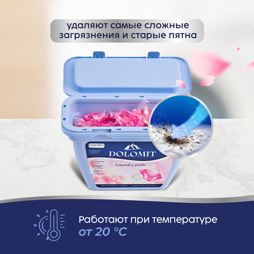 Капсулы для стирки белья универсальные MARABU серия DOLOMIT "вишня монморанси", 52 капсулы интересное:
