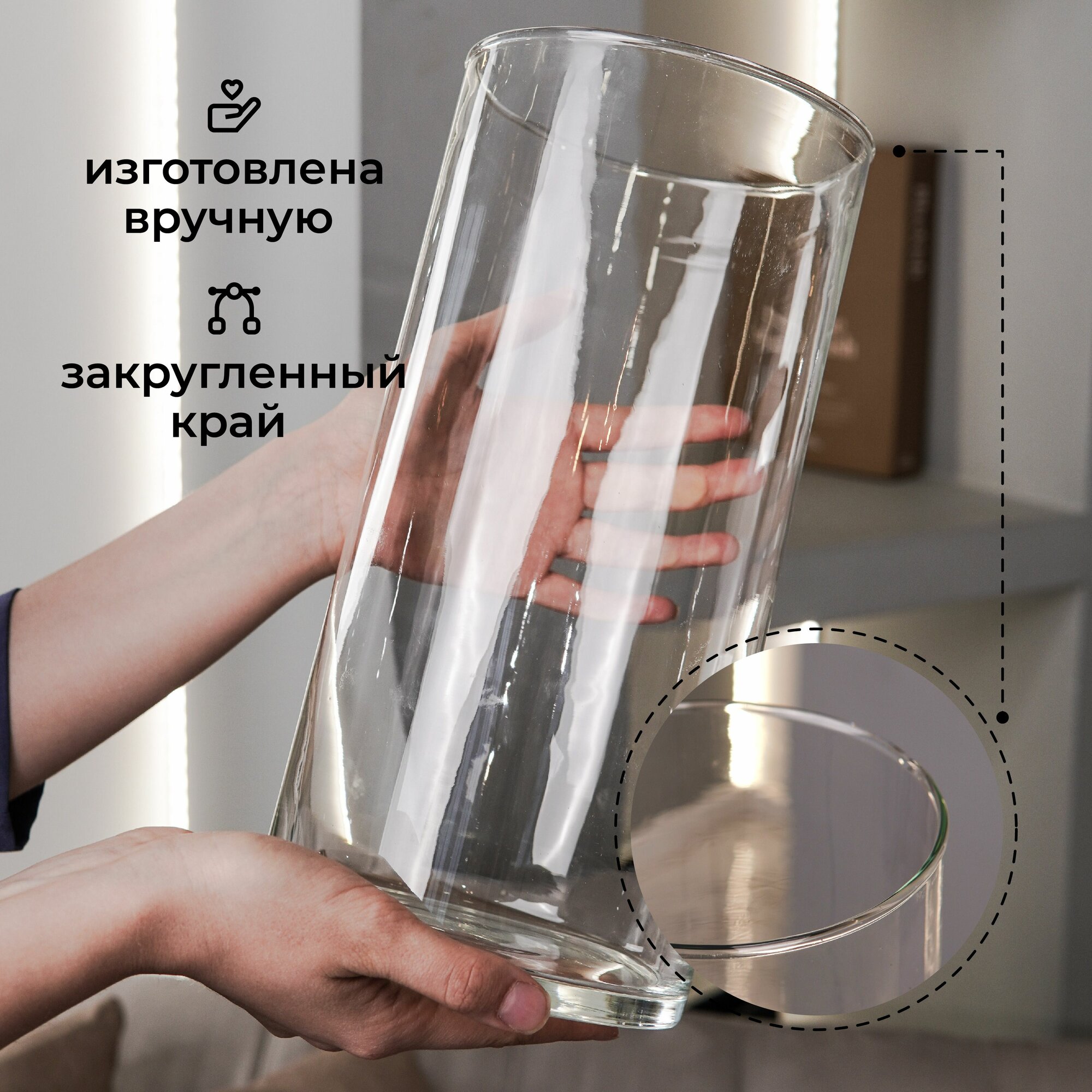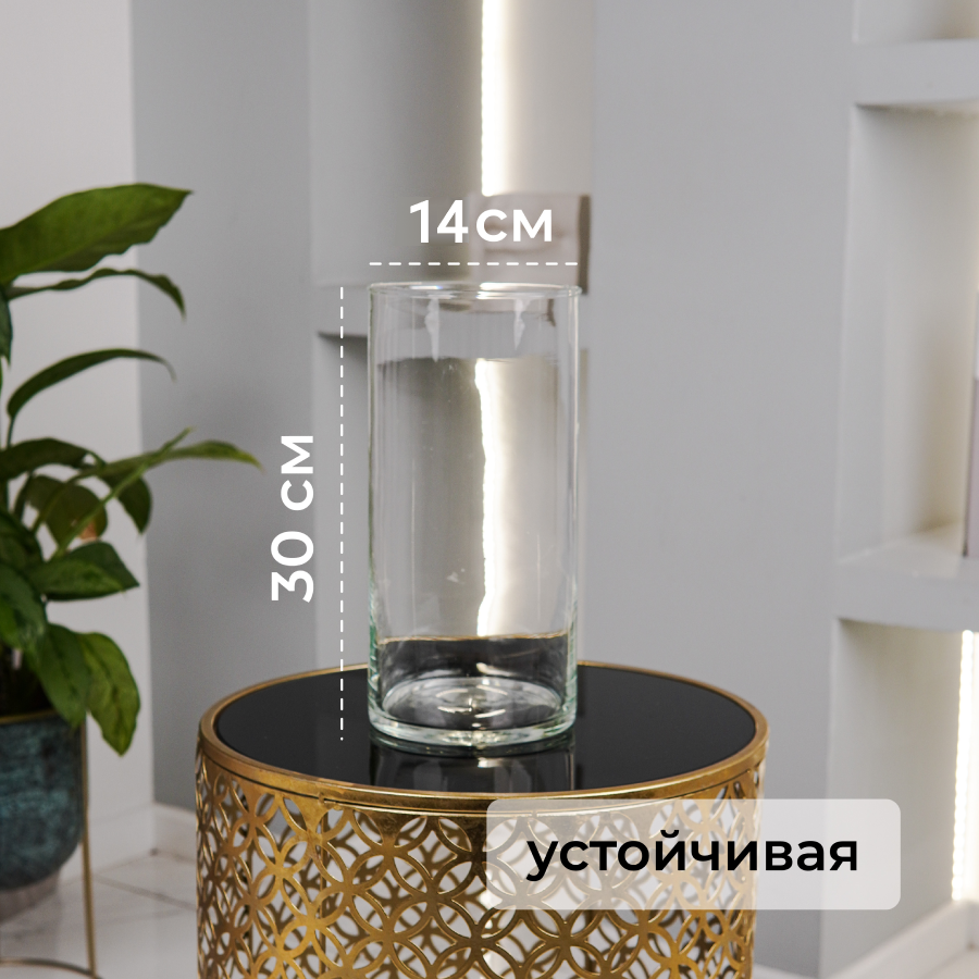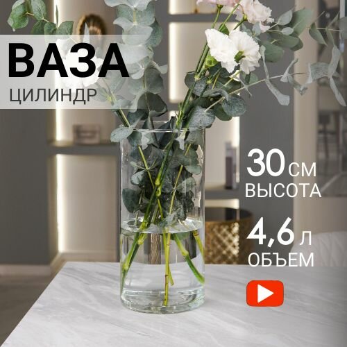 Ваза для цветов и сухоцветов для декора из стекла прозрачная Adelari Цилиндр 30*15 см -1 шт интересное: