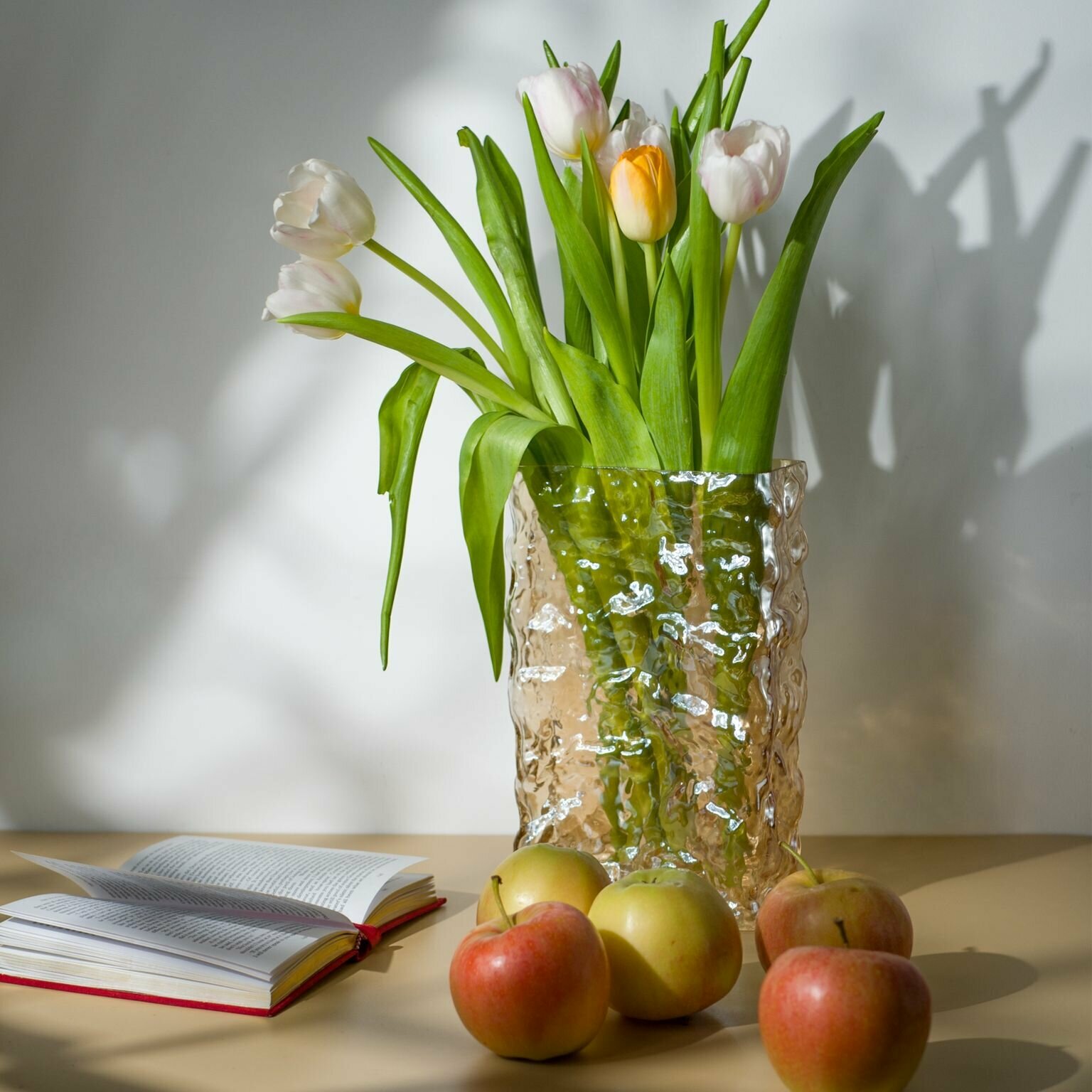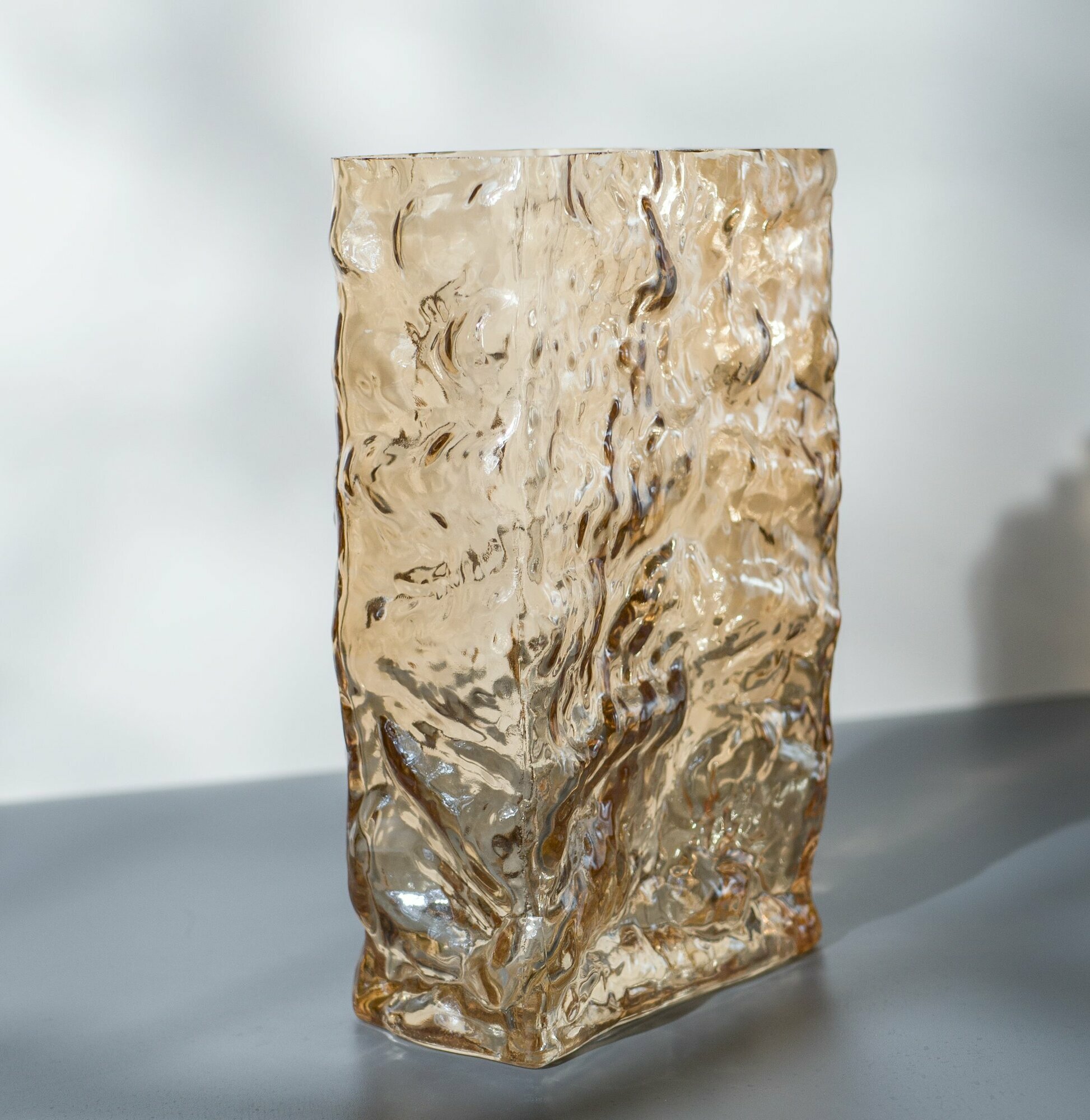 Стеклянная ваза с эффектом мятое стекло цвет янтарь интересное: