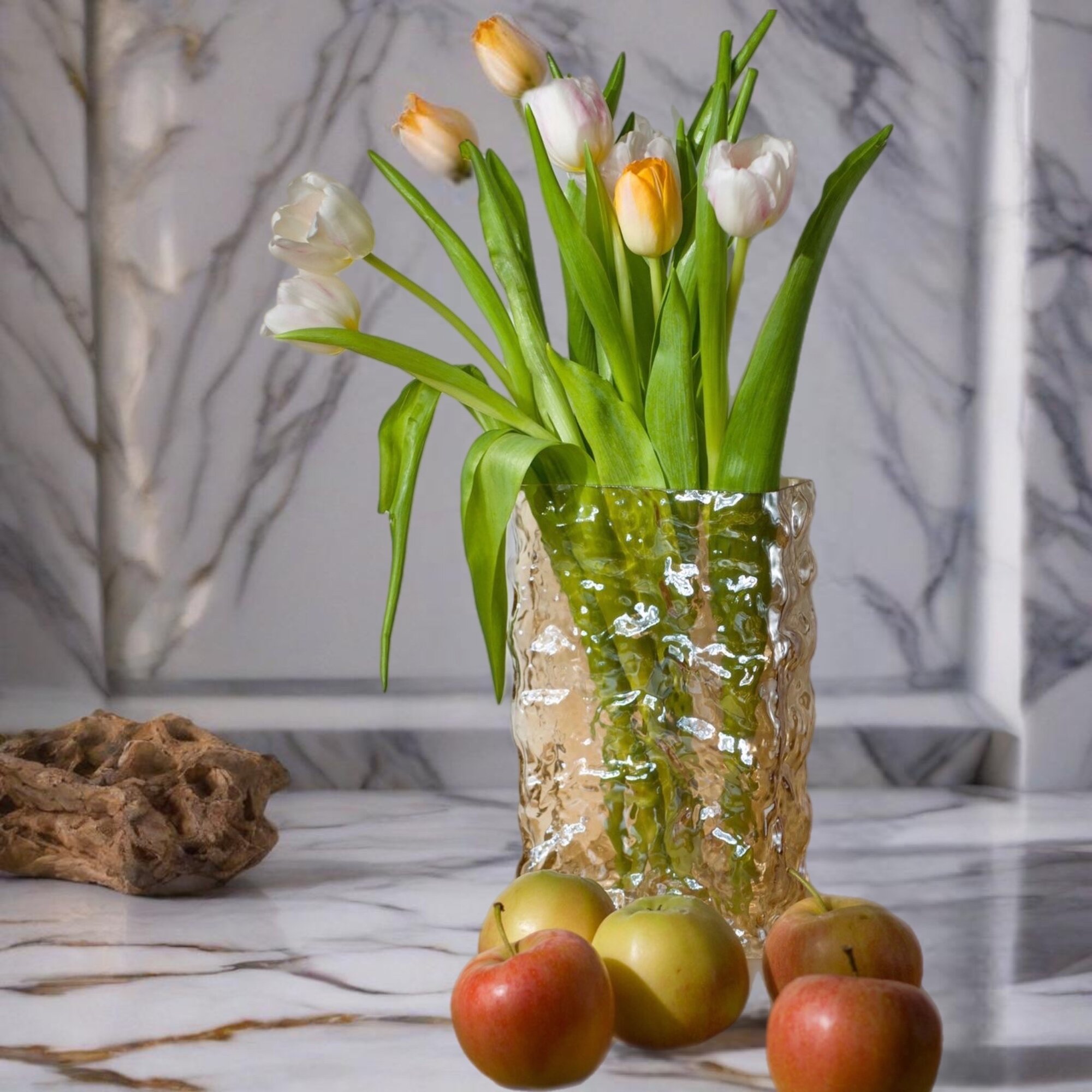 Стеклянная ваза с эффектом мятое стекло цвет перламутр