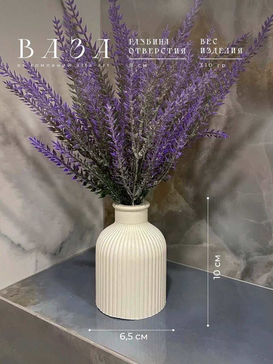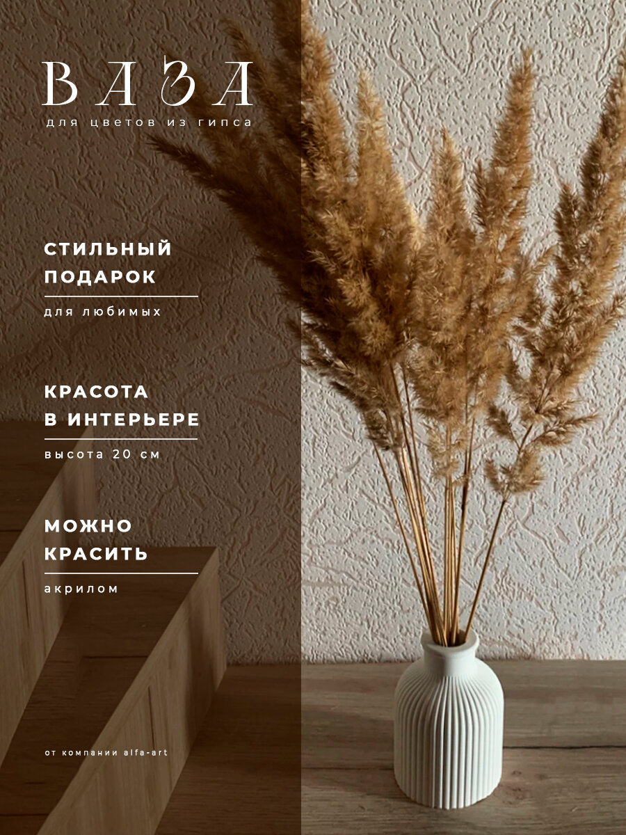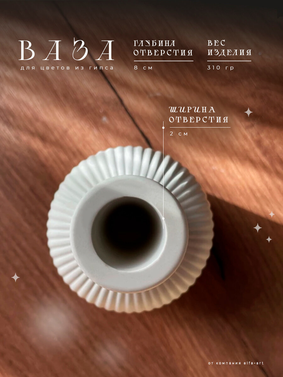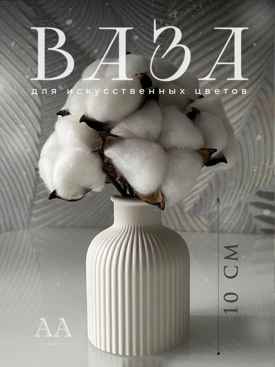 Ваза для цветов сухоцветов белая декоративная из гипса / Вазочка маленькая интересное: