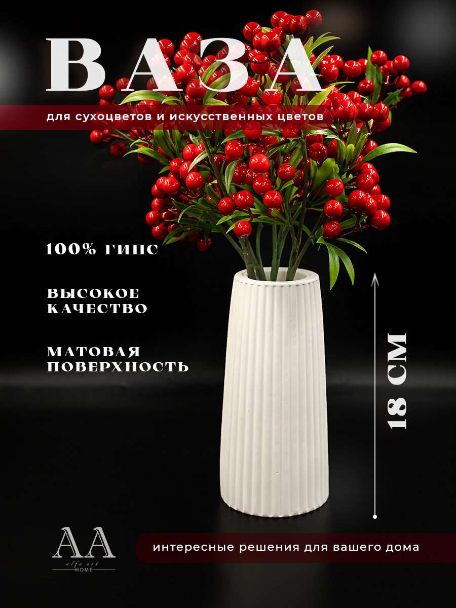 Ваза для цветов сухоцветов белая декоративная из гипса интересное: