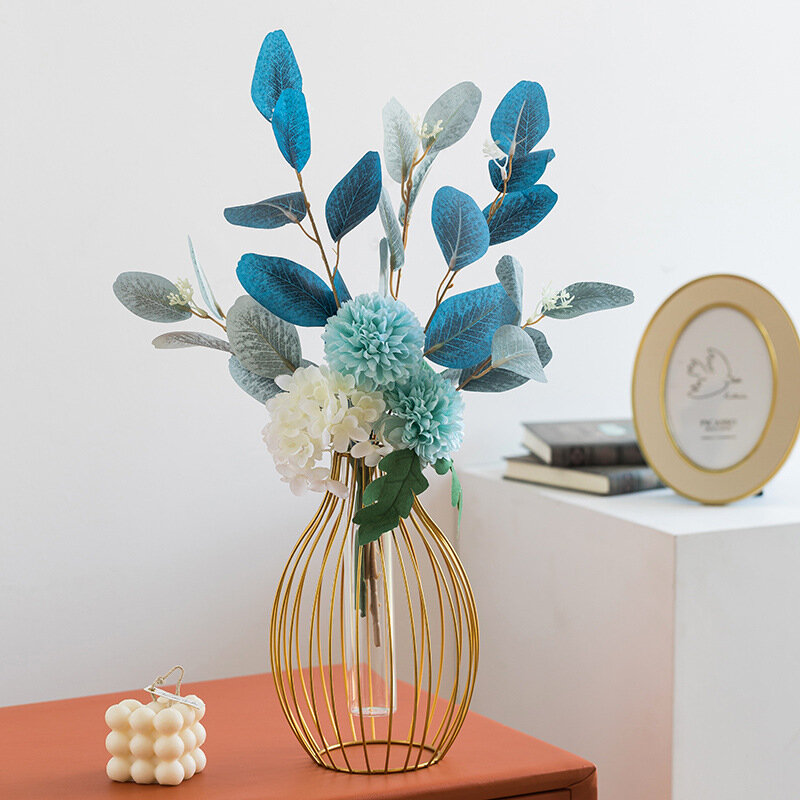 Ваза для цветов и сухоцветов металлическая со стеклом декоративная интерьерная