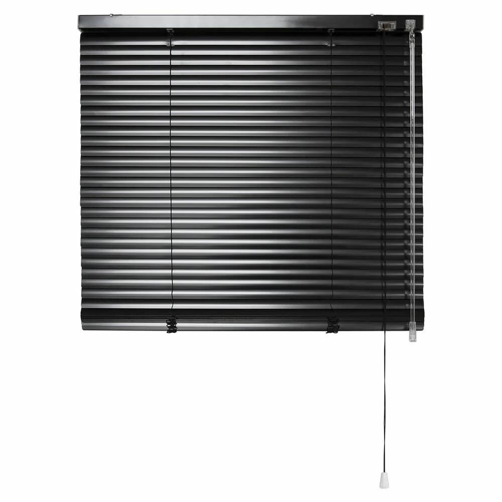 Жалюзи горизонтальные алюминиевые для окон и дверей, цвет черный 80-200см, управление справа