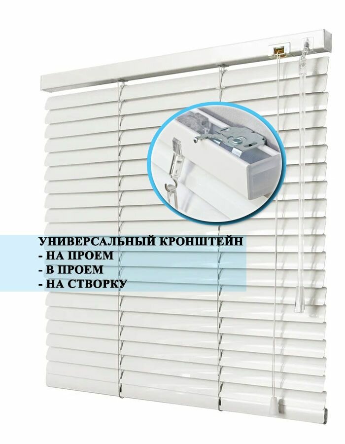 Жалюзи горизонтальные алюминиевые для окон и дверей, цвет белый 95-200см, управление справа
