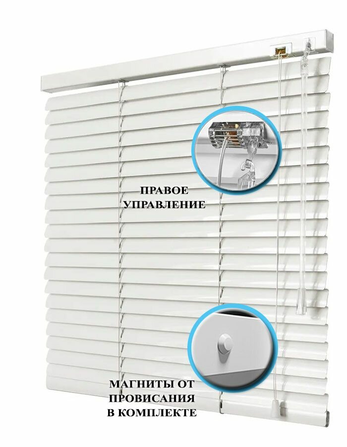 Жалюзи горизонтальные алюминиевые для окон и дверей, цвет белый 170-210см, управление справа