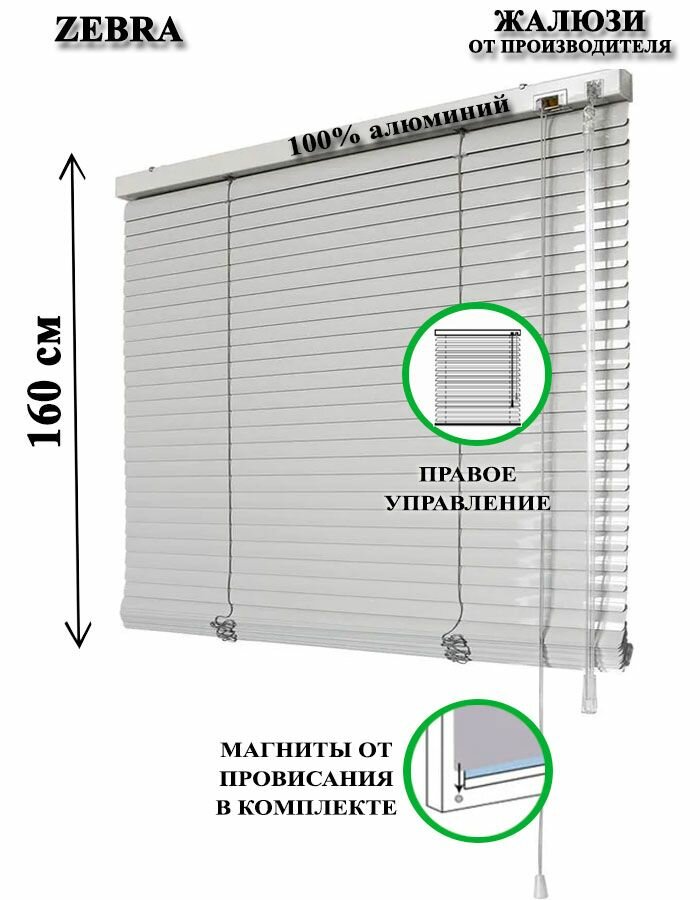 Жалюзи горизонтальные алюминиевые для окон и дверей, цвет белый 120-160см, управление справа