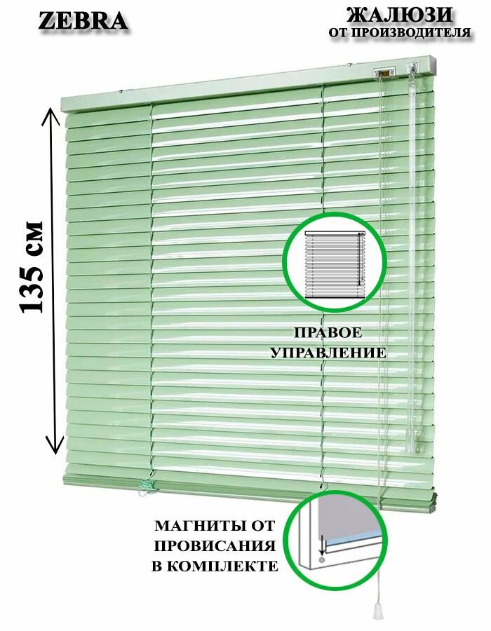 Купить Жалюзи горизонтальные алюминиевые для окон и дверей, цвет зеленый 50-135см, управление справа