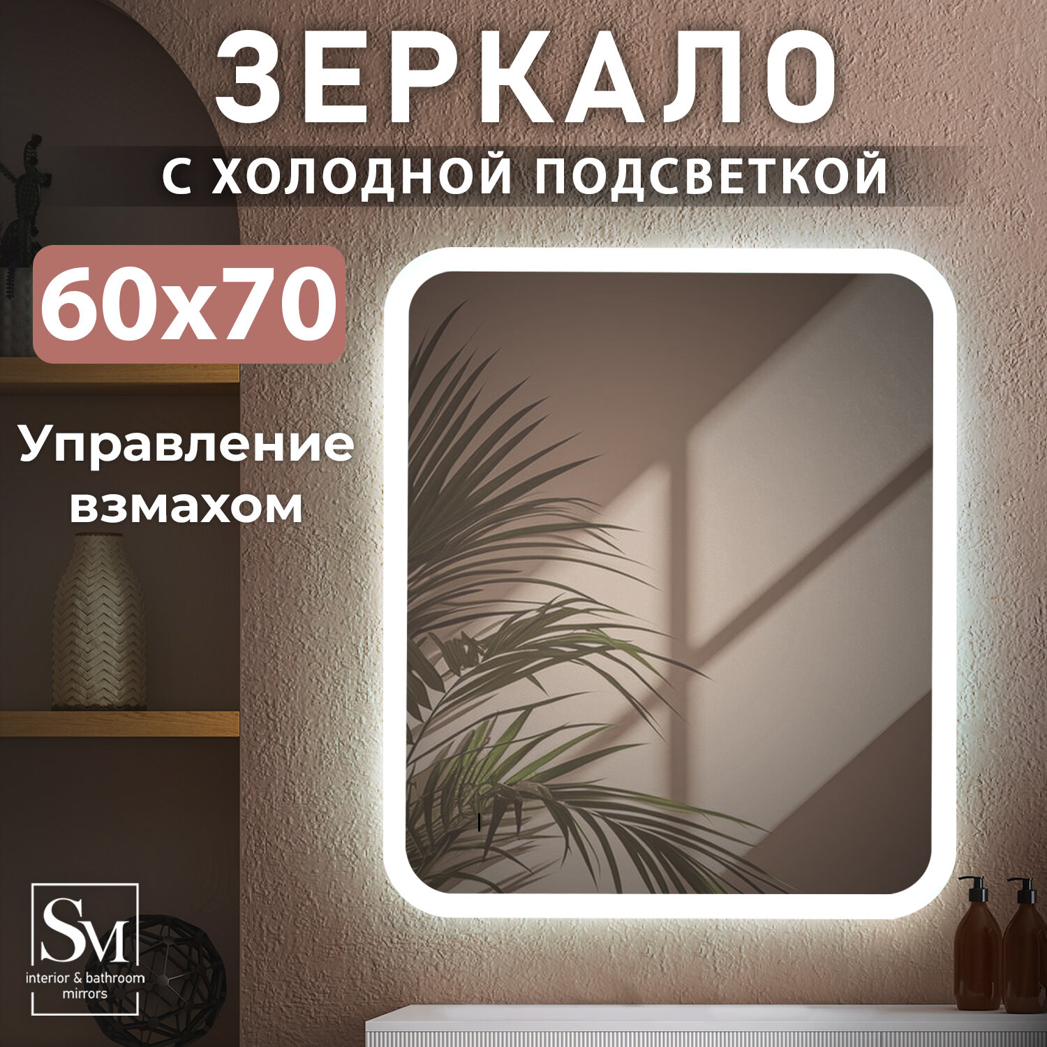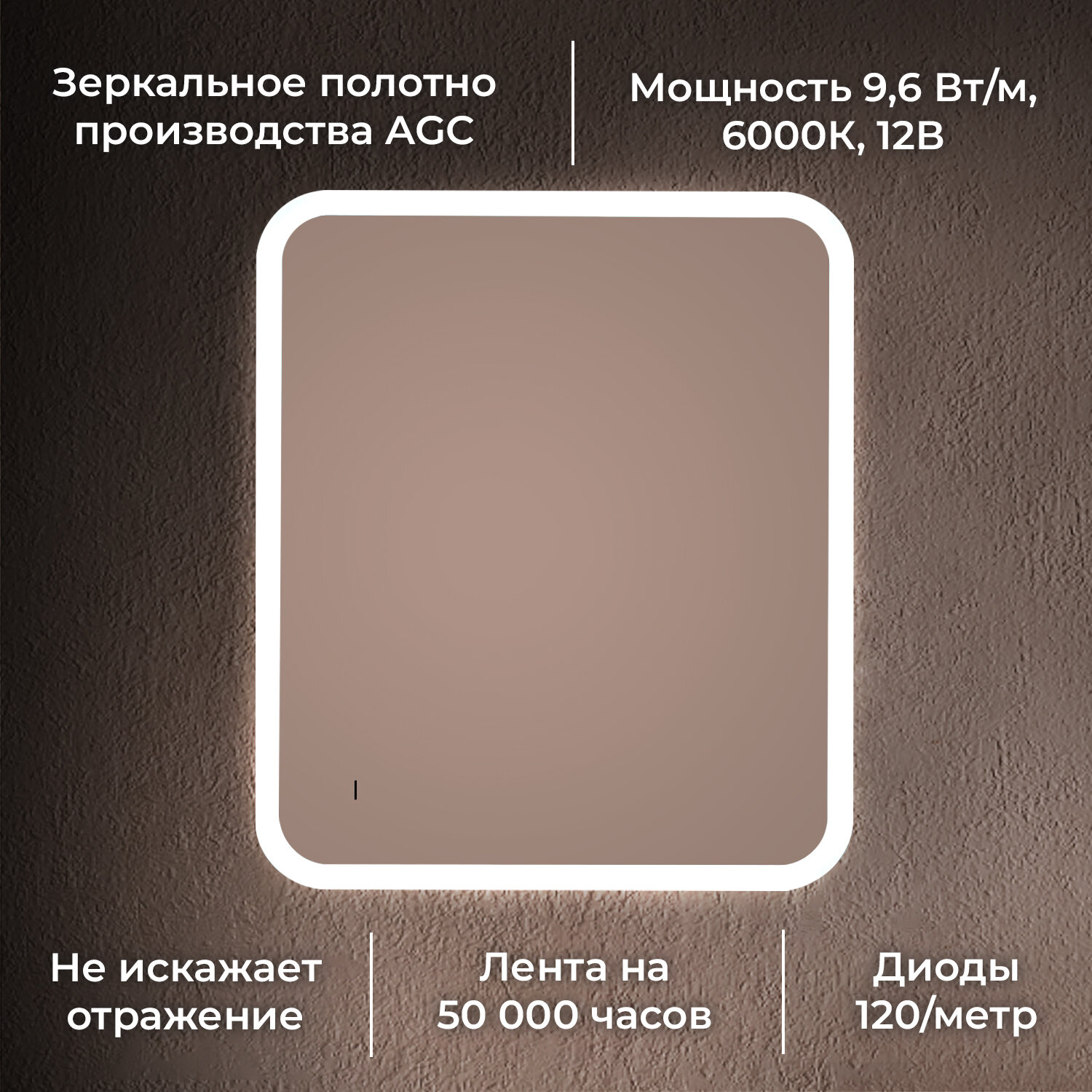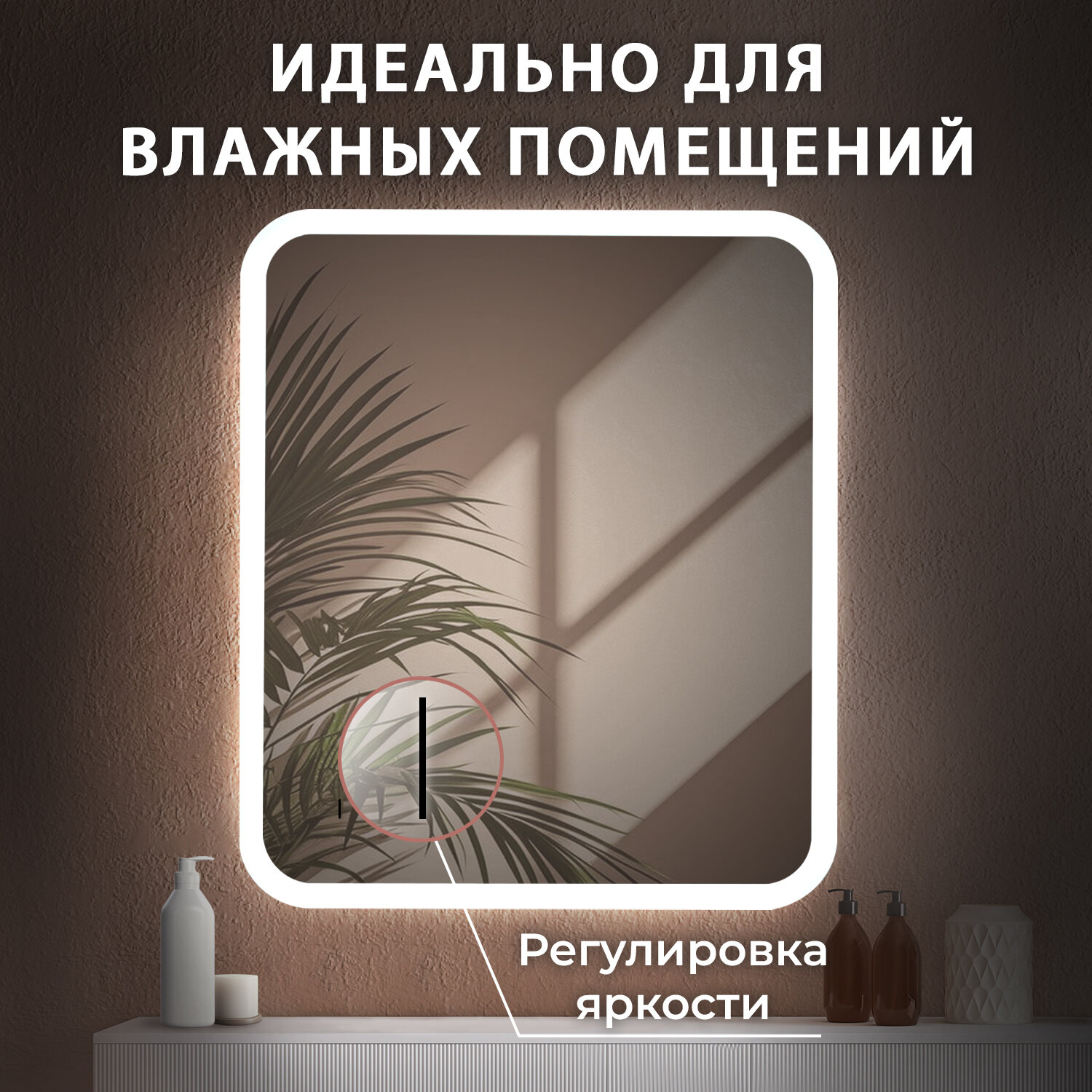 Зеркало с подсветкой в ванную Silver Mirrors "Джобс" 60 х 70 см, (прямоугольное, ореольная, холодная подсветка, бесконтактный выключатель, регулировка яркости) интересное:
