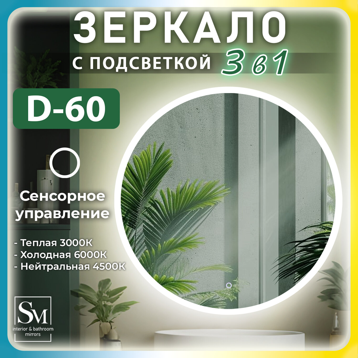 Зеркало в ванную Silver Mirrors "Pele lite" D-60 (зеркало настенное, влагозащищенное, зеркало в ванную с подсветкой 6000К, сенсорный выключатель, регулировка яркости)