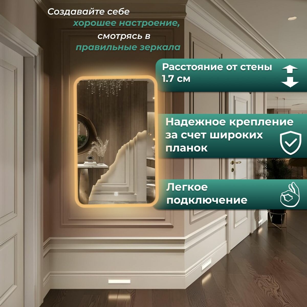 Зеркало настенное Иллюзия лайт, теплая подсветка, сенсорный выключатель, для ванной, 50х80