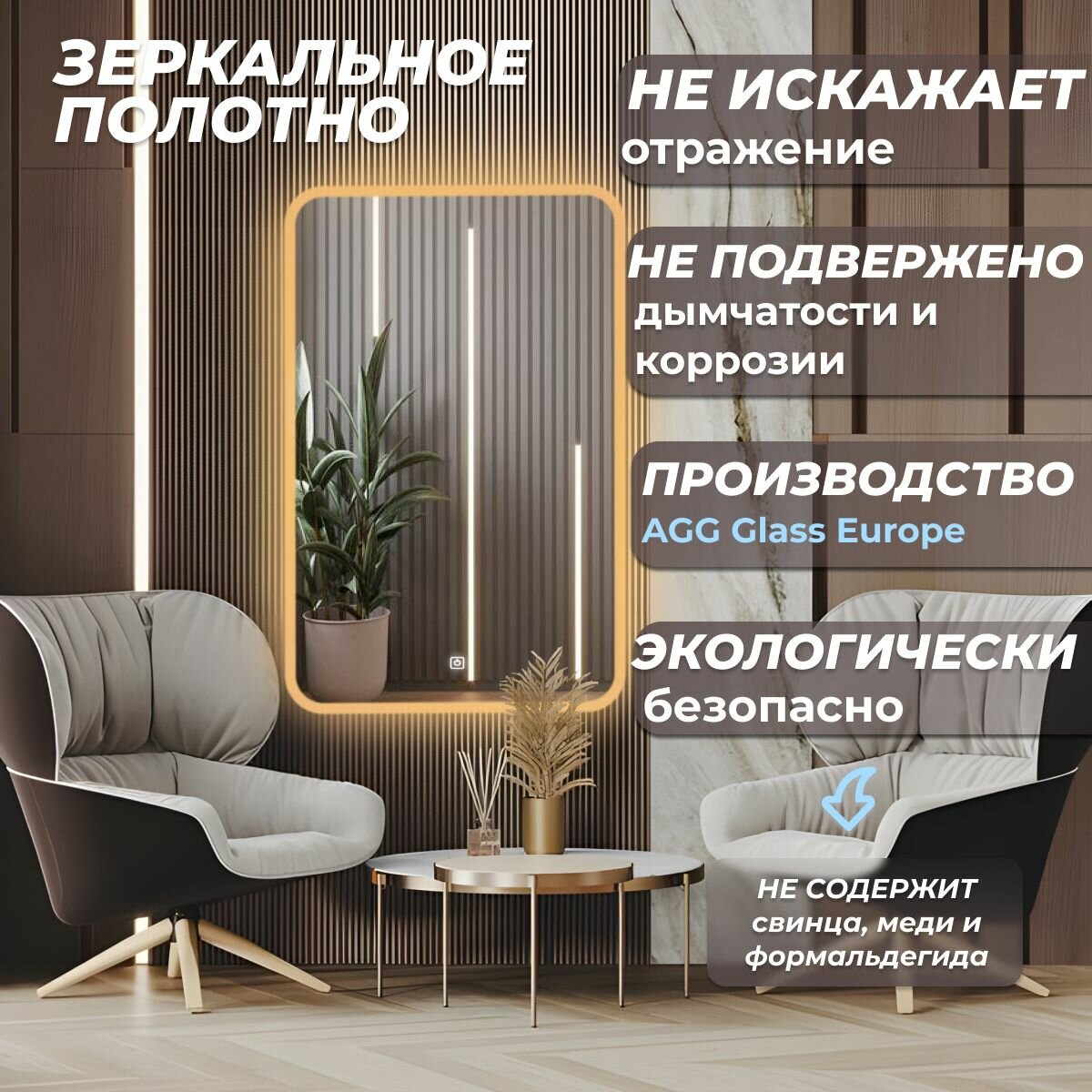 Зеркало настенное с подсветкой,фронтальной подсветкой,фоновой подсветкой и сенсорным выключателем для ванной, Иллюзия лайт 50х80