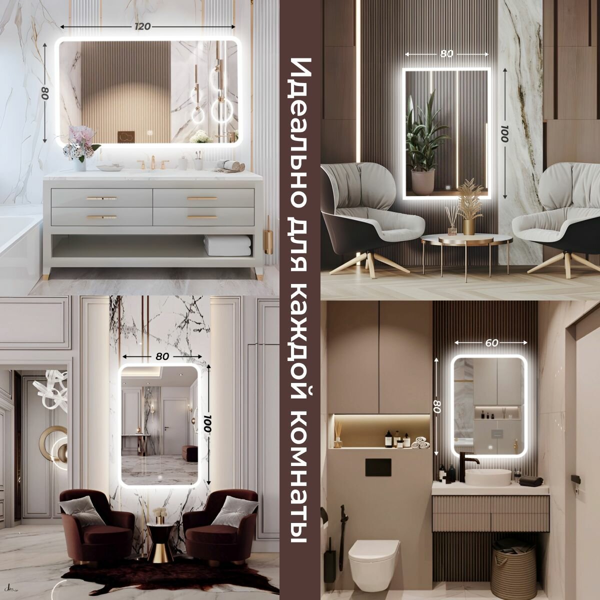 Зеркало настенное с подсветкой фоновой LED-подсветкой,фронтальной подсветкой/зеркало для ванной Илюзия лайт 100х80