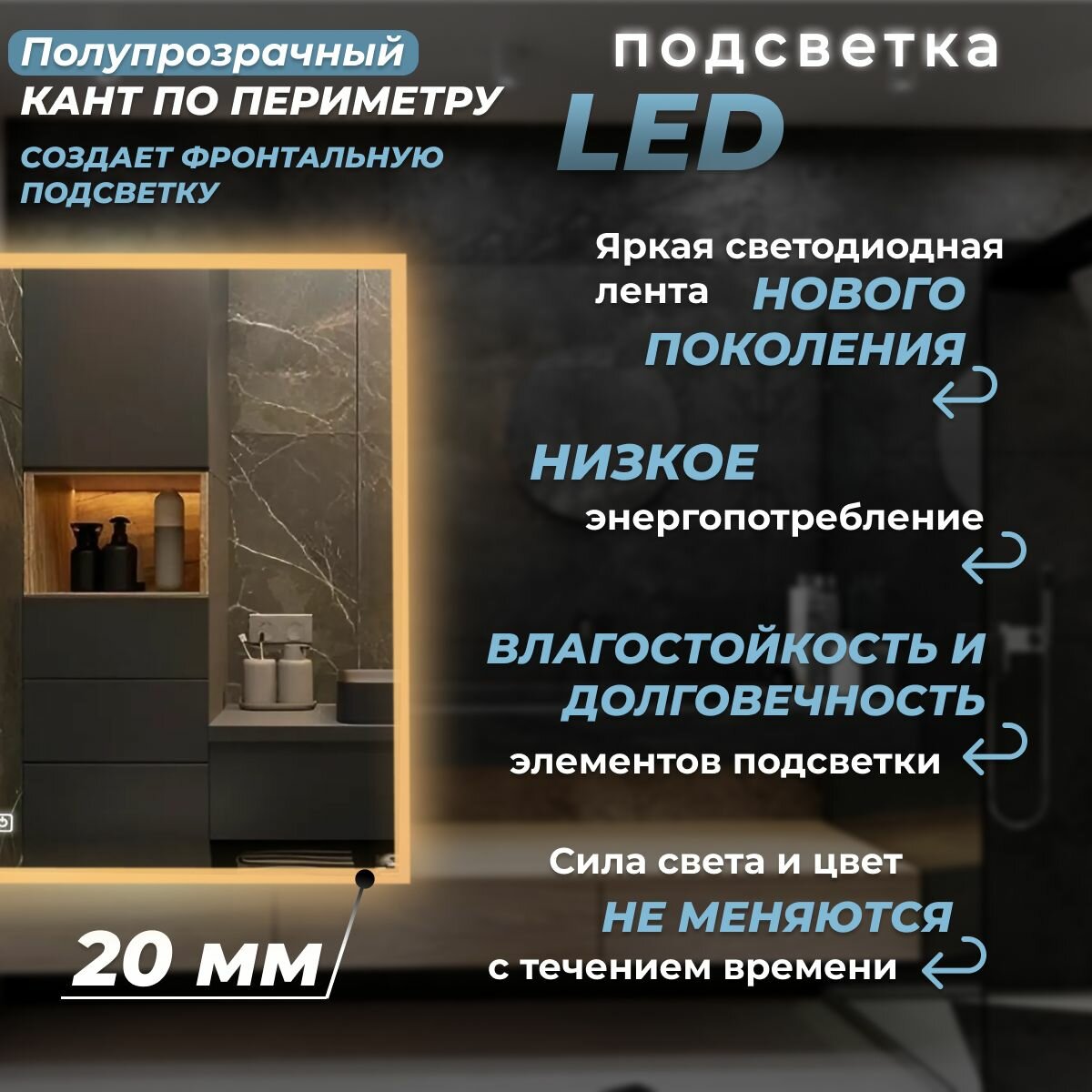Зеркало настенное Иллюзия лайт, теплая подсветка, сенсорный выключатель, для ванной, 100х80