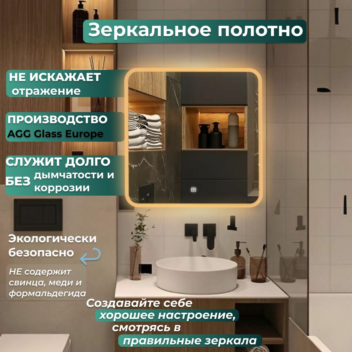 Зеркало настенное Иллюзия лайт, теплая подсветка, сенсорный выключатель, для ванной, 80х80
