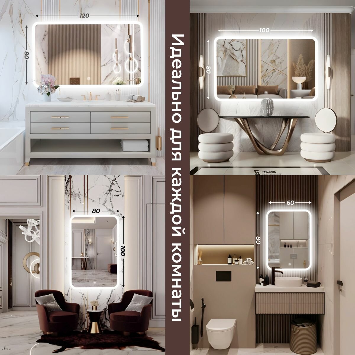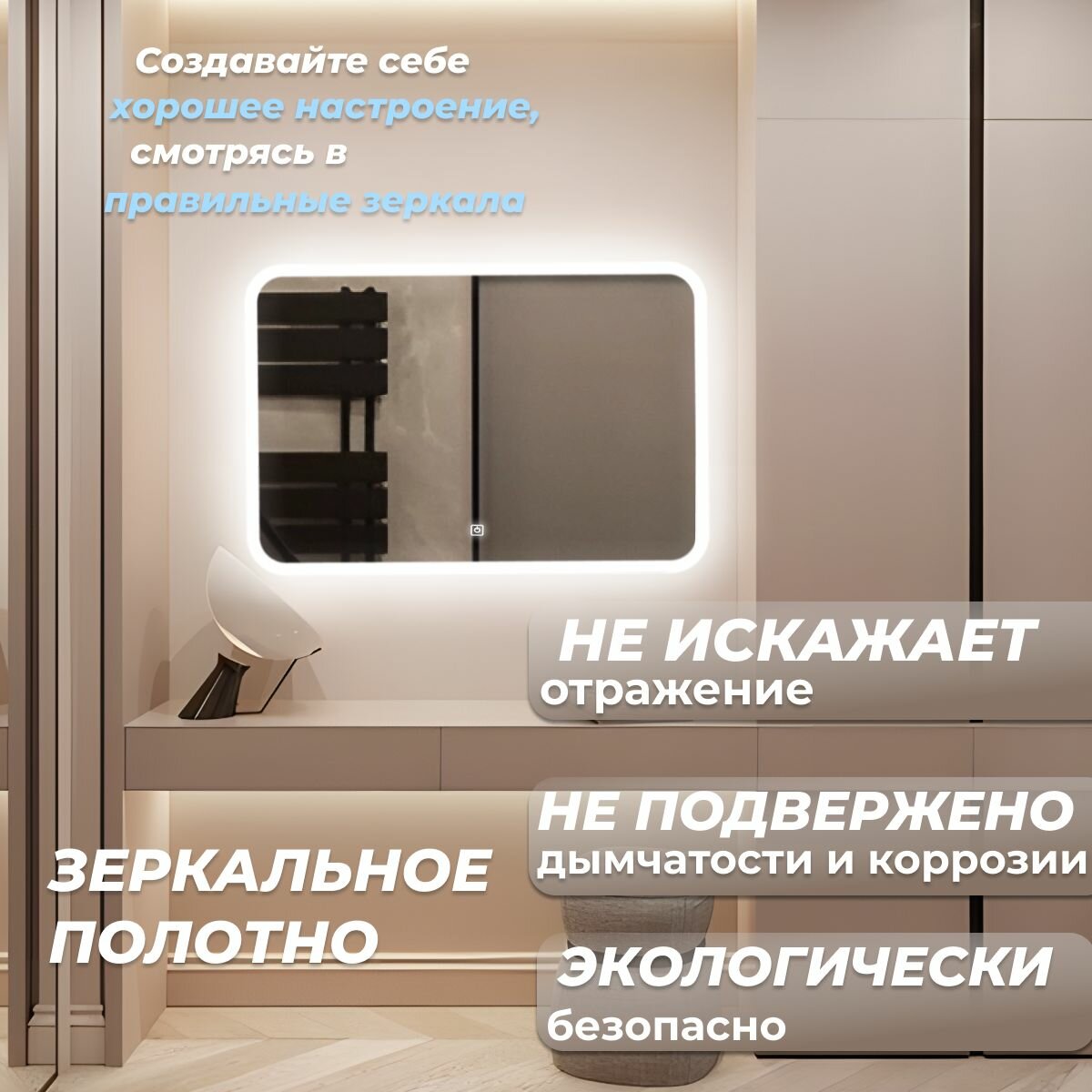 Зеркало настенное с подсветкой фоновой LED-подсветкой,фронтальной подсветкой/зеркало для ванной Илюзия лайт 100х80