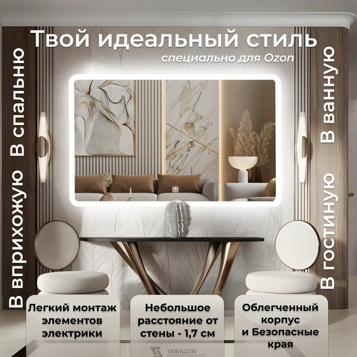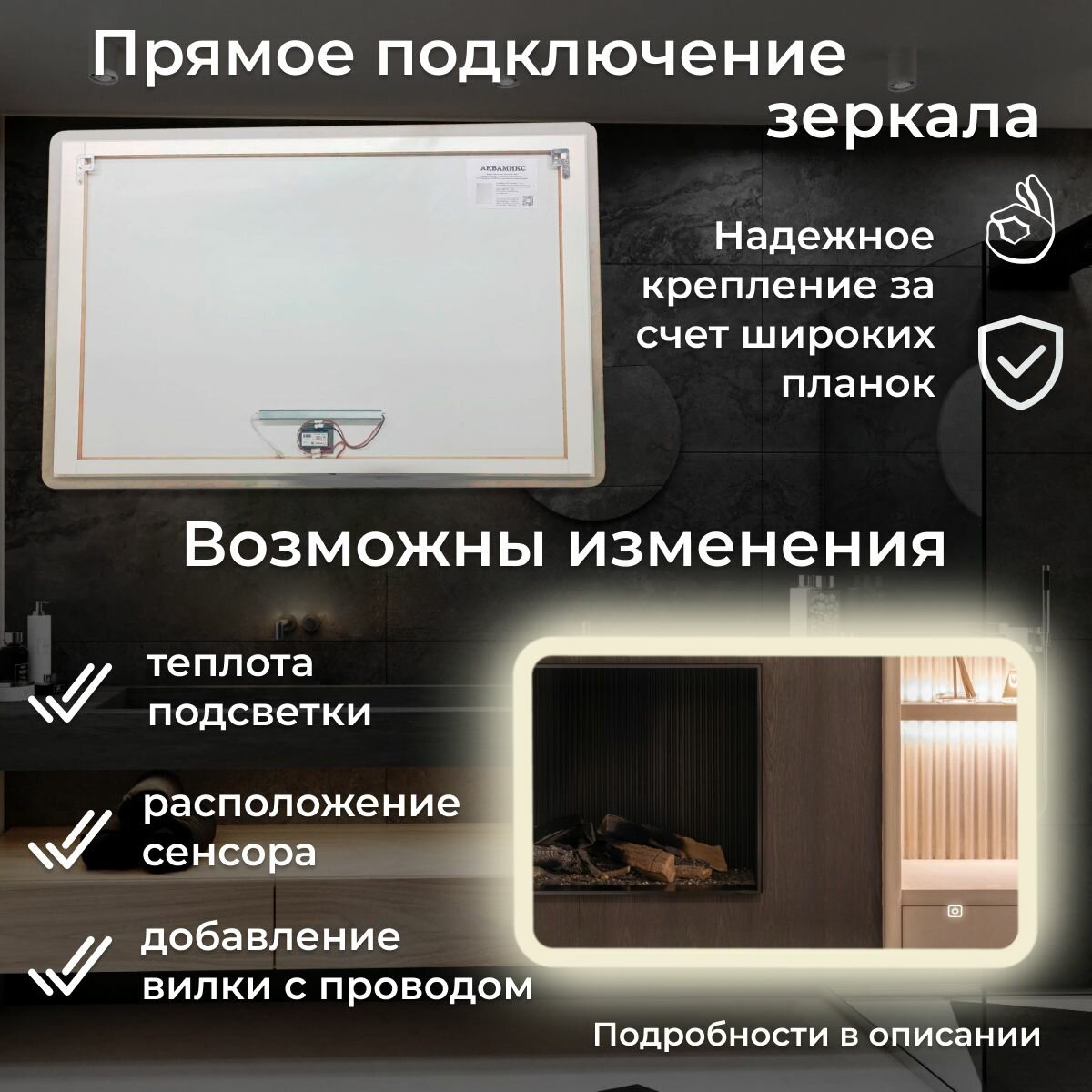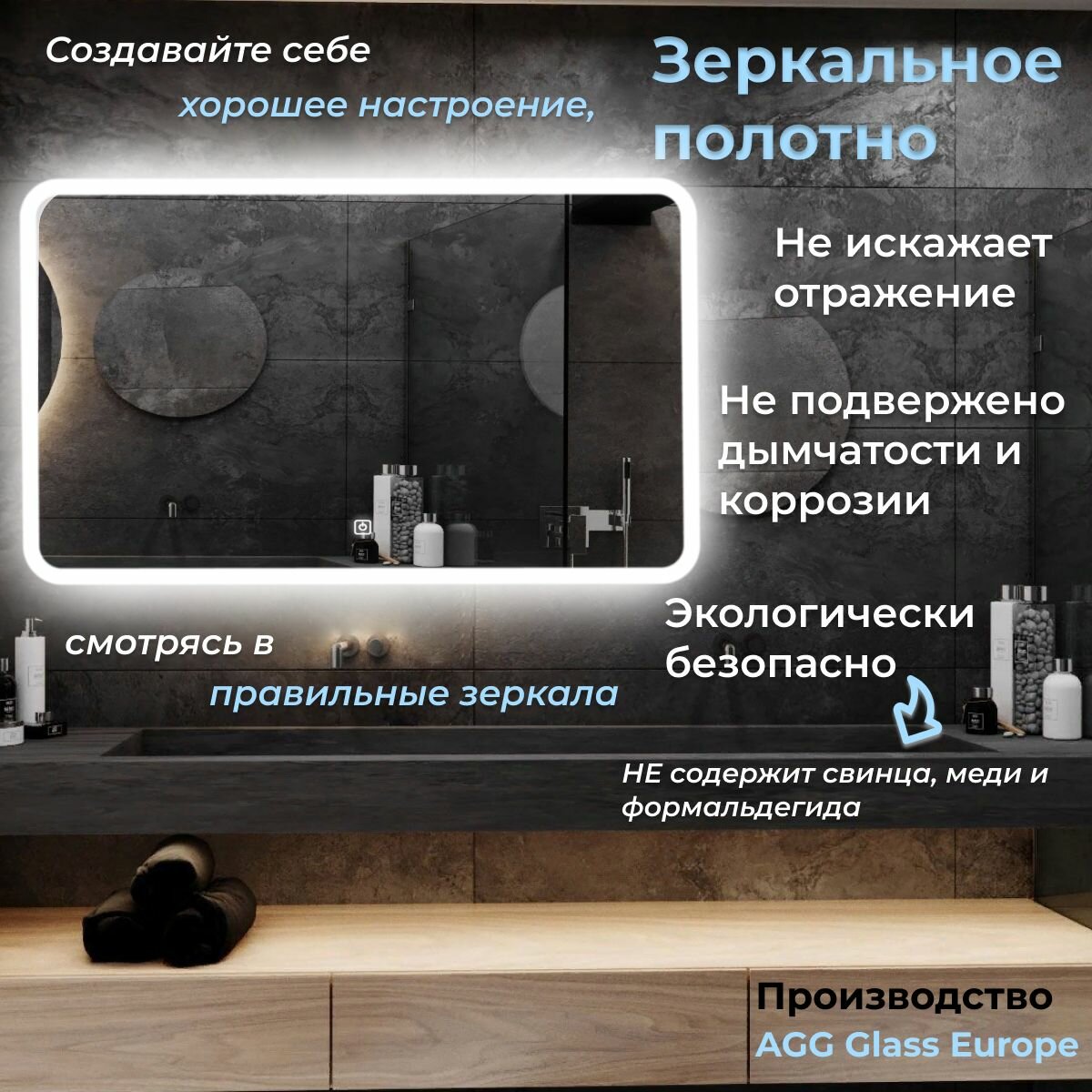 Зеркало настенное с подсветкой фоновой LED-подсветкой,фронтальной подсветкой/зеркало для ванной Илюзия лайт 100х80