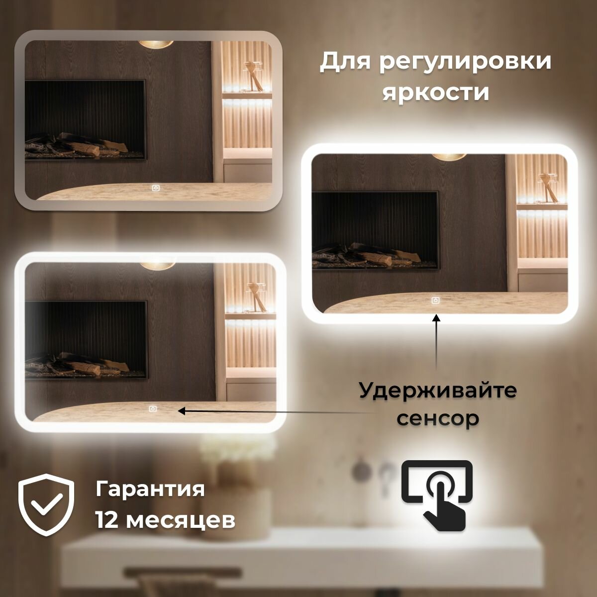 Зеркало настенное Иллюзия, теплая подсветка, сенсорный выключатель, для ванной, 100х80
