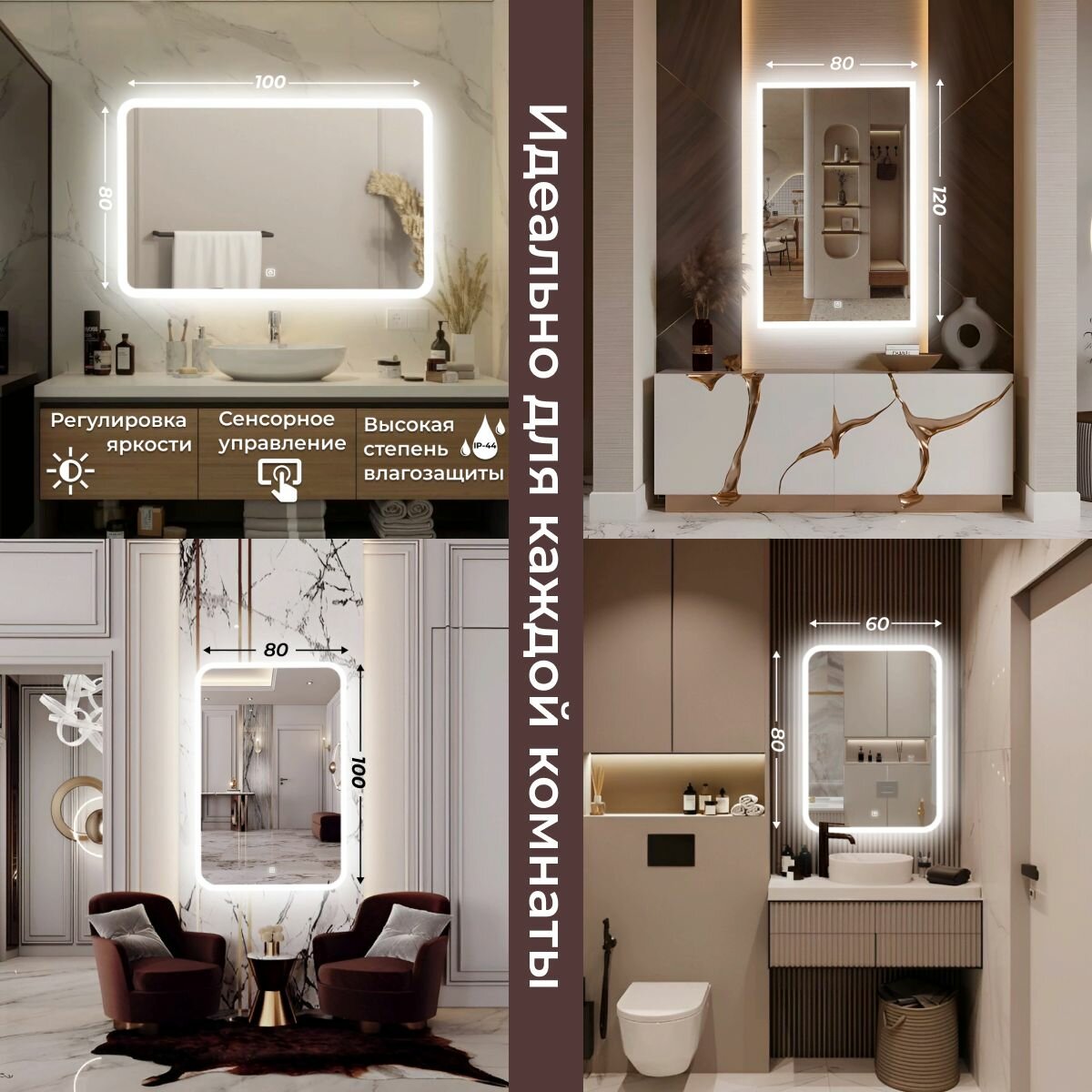 Зеркало настенное с подсветкой фоновой LED-подсветкой,фронтальной подсветкой/зеркало для ванной Илюзия лайт 80х100
