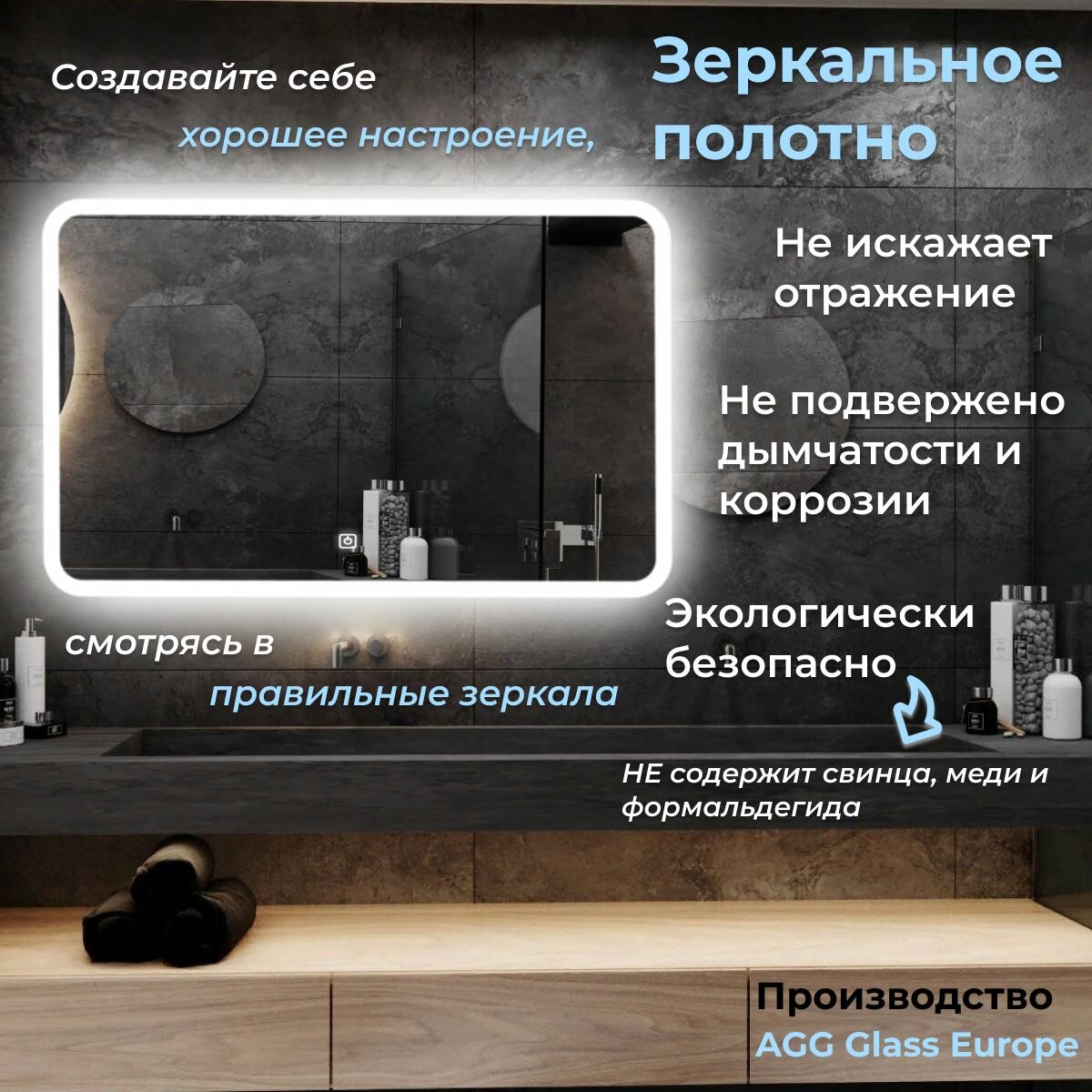 Зеркало настенное с подсветкой,фронтальной подсветкой,фоновой подсветкой и сенсорным выключателем для ванной, Иллюзия лайт 100х80