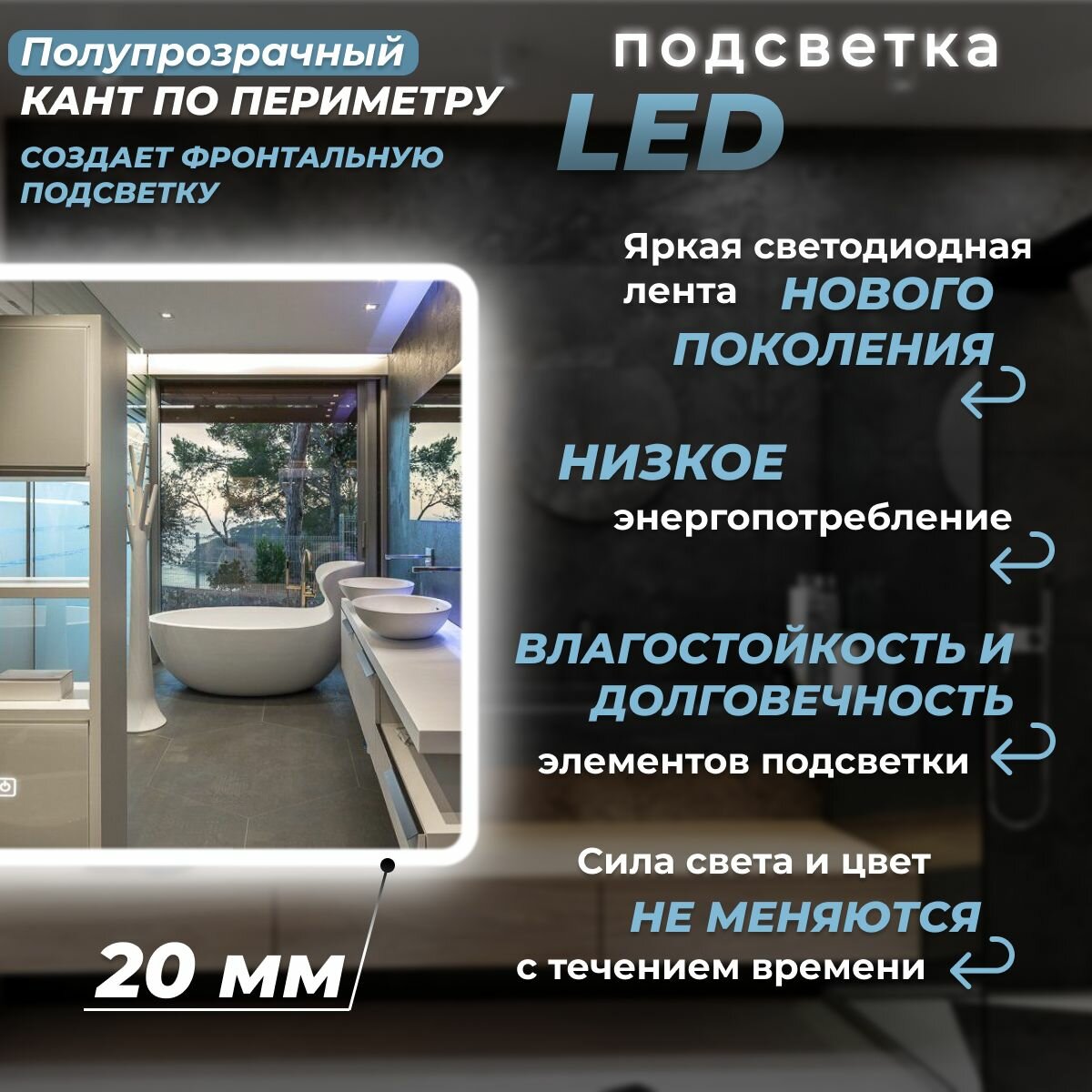Зеркало настенное Иллюзия лайт с фоновой LED-подсветкой,фронтальной подсветкой и сенсорным выключателем для ванной 60х80