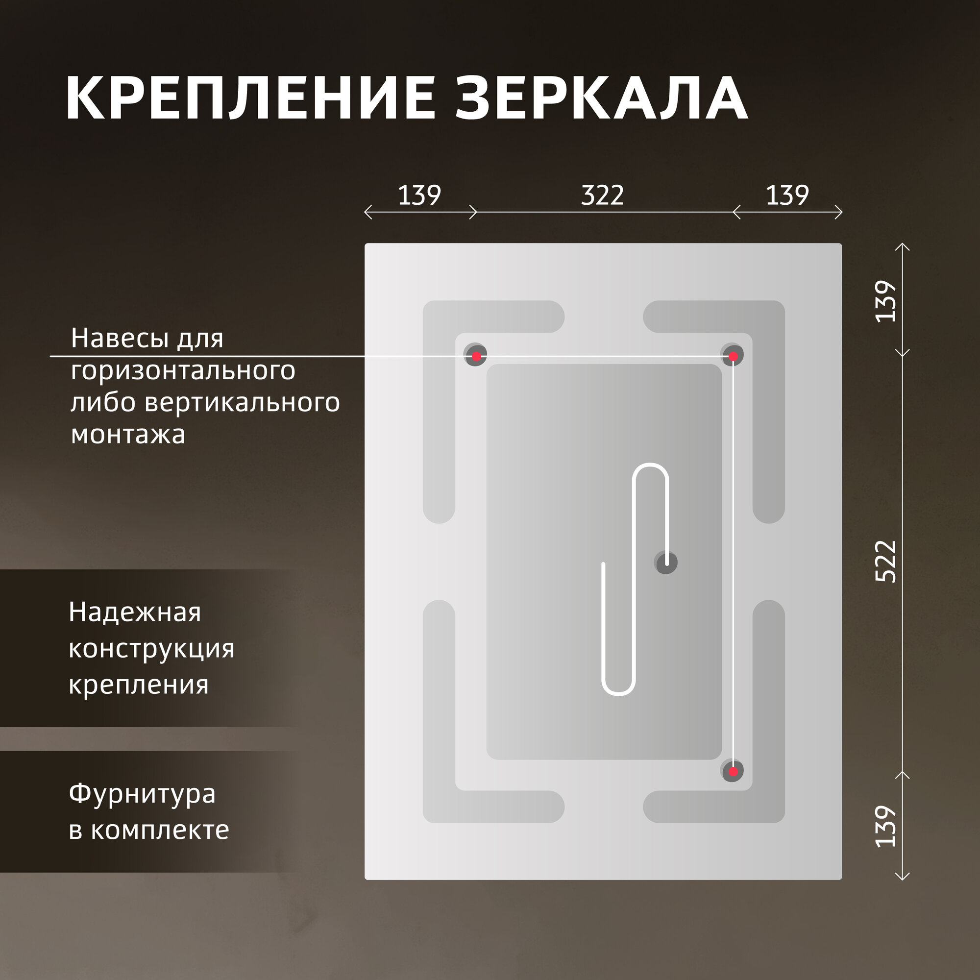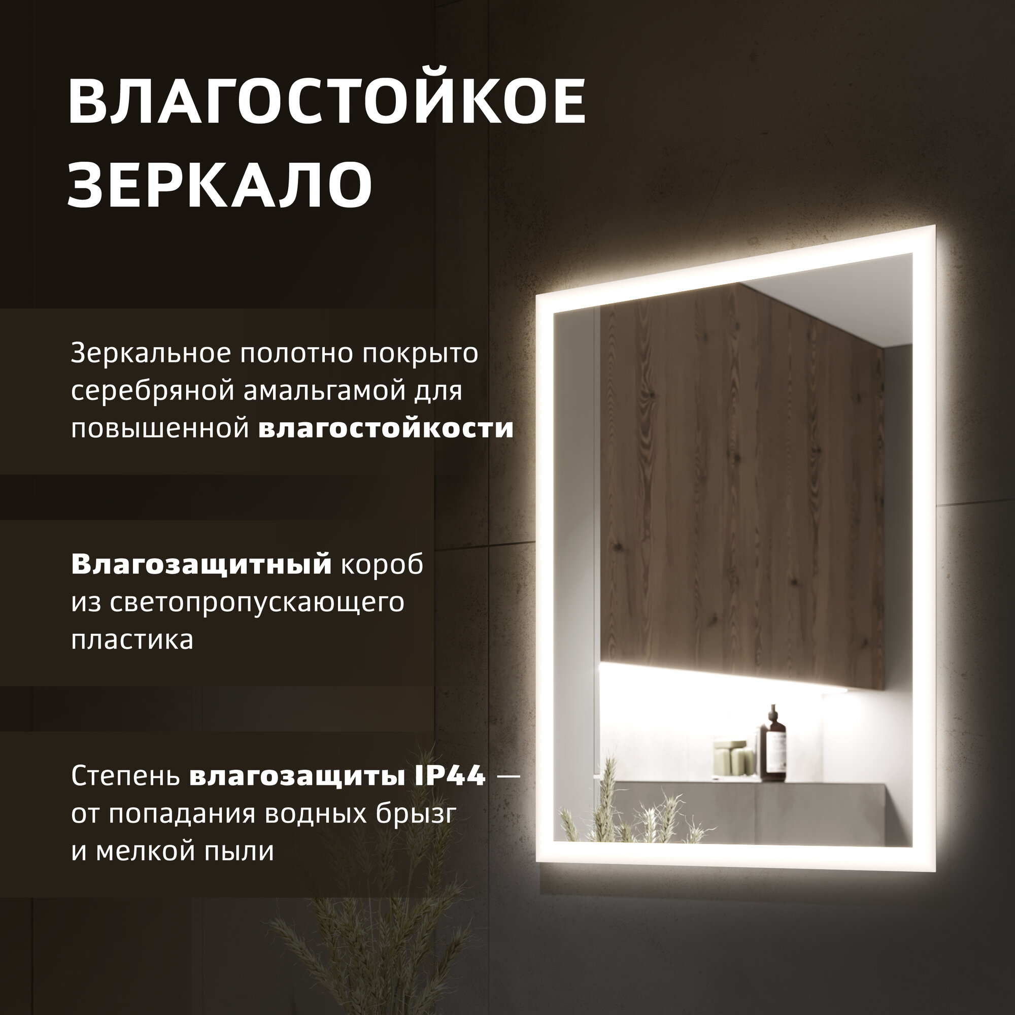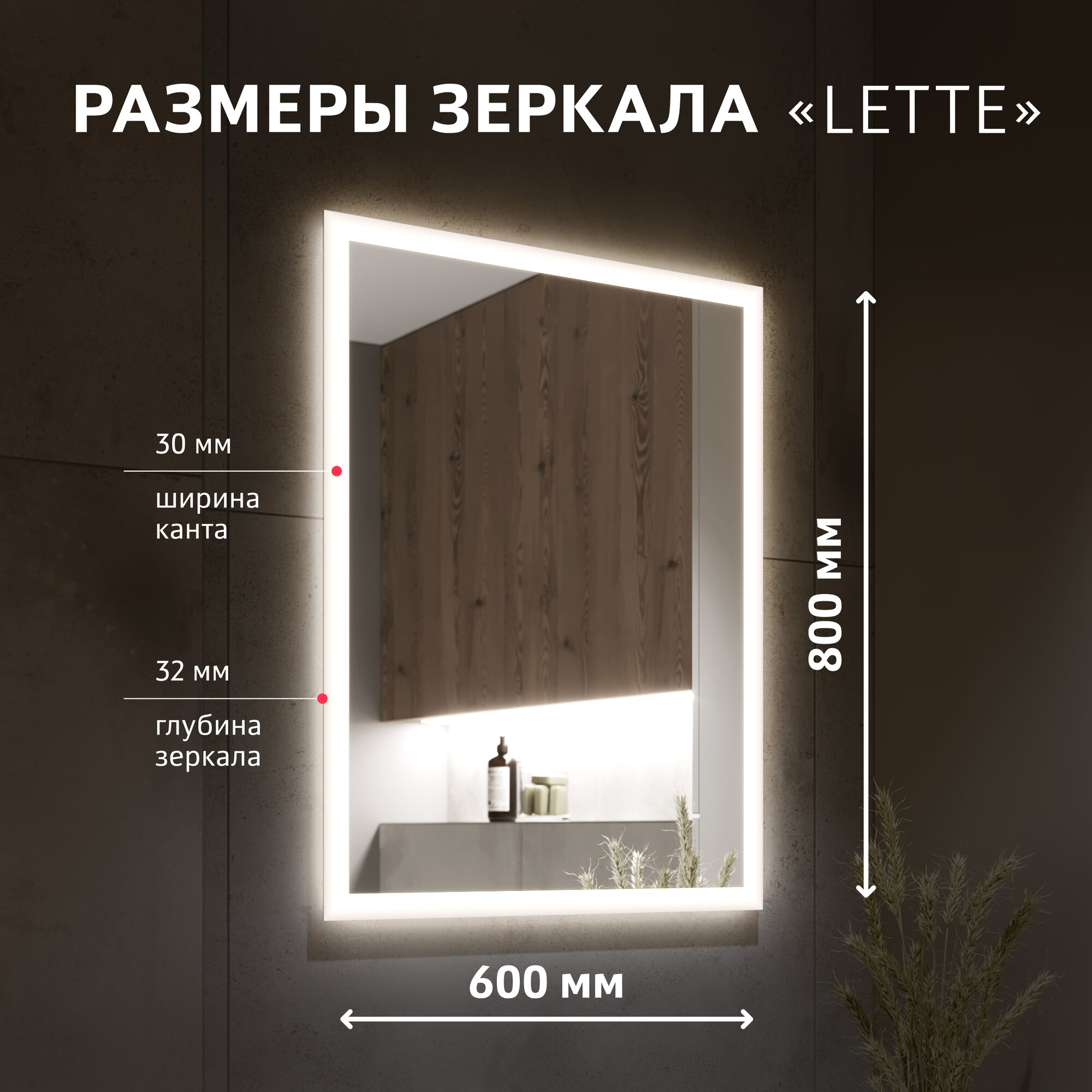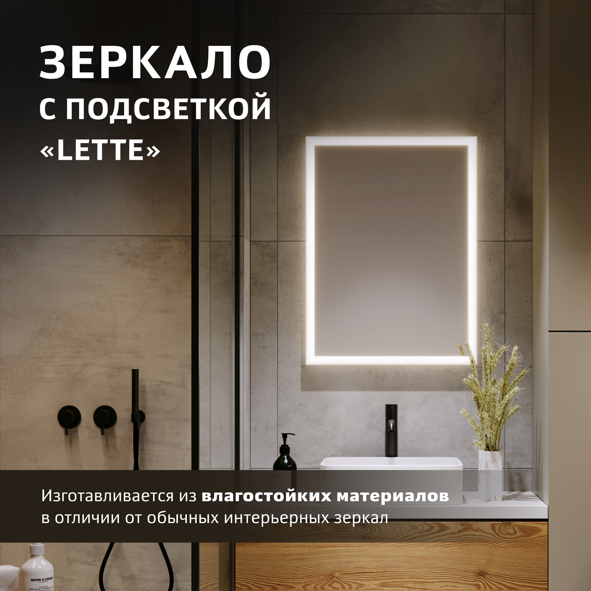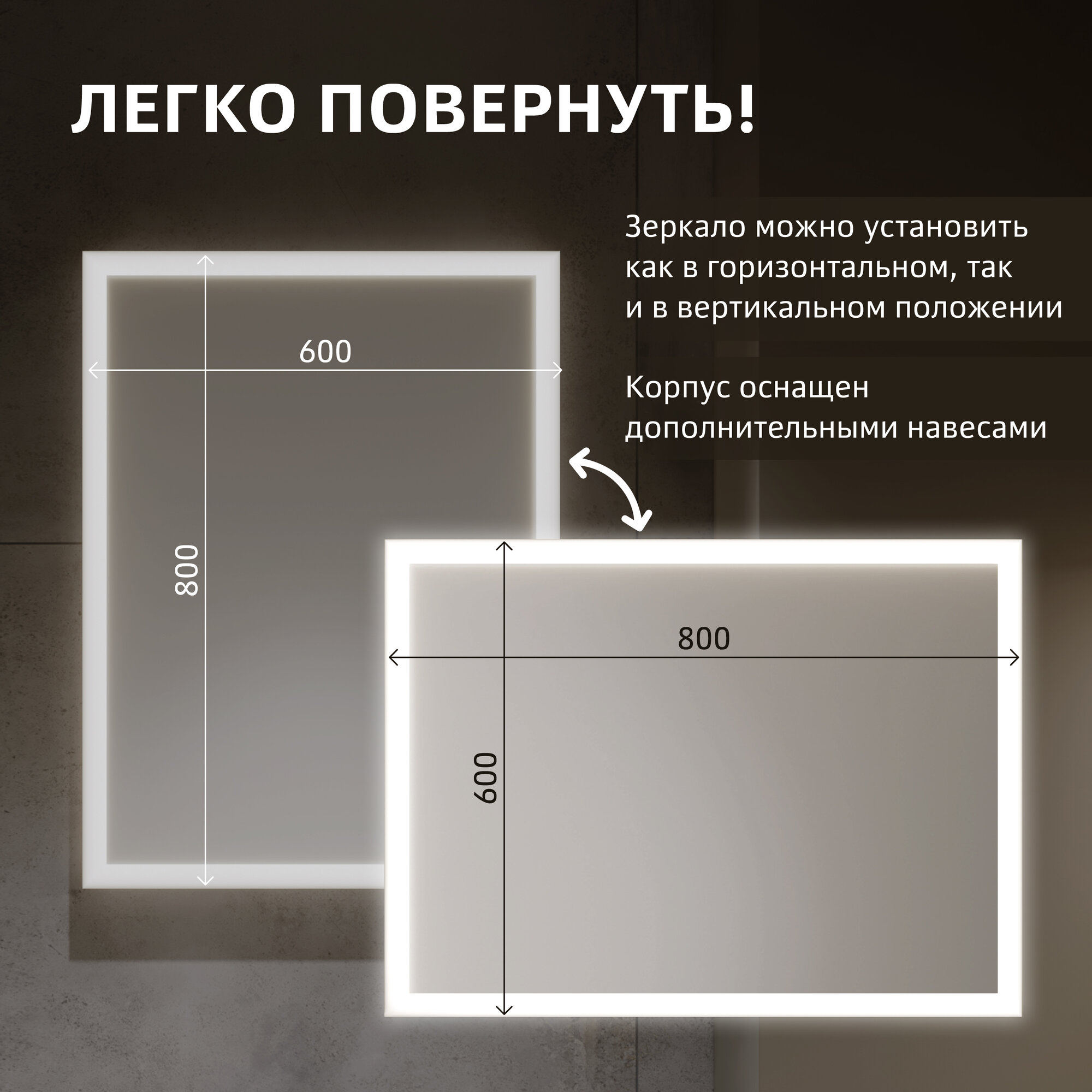 Зеркало с подсветкой Alavann Lette 60x80 см, с LED подсветкой, механической кнопкой, вертикальное или горизонтальное крепление интересное: