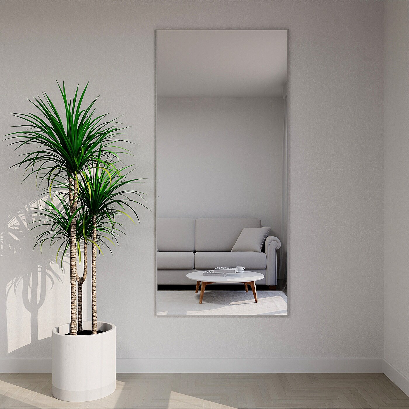 Зеркало настенное в алюминиевой раме ALUMIRROR, 190х60 см. Серебро