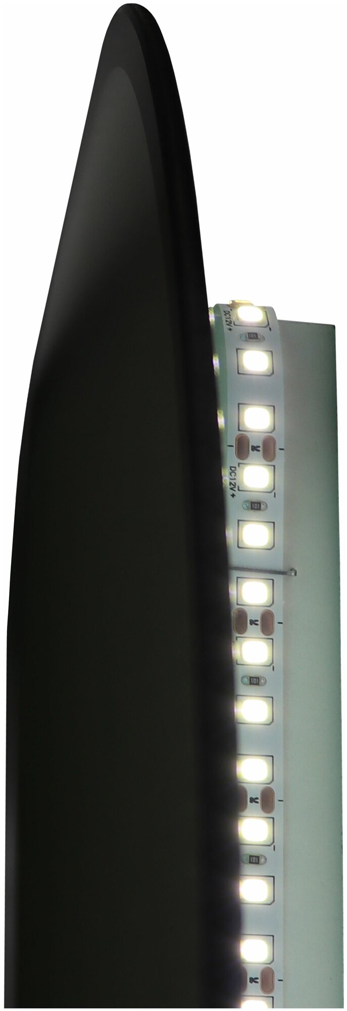 Зеркало интерьерное настенное с подсветкой парящее полукруглое левое для ванной