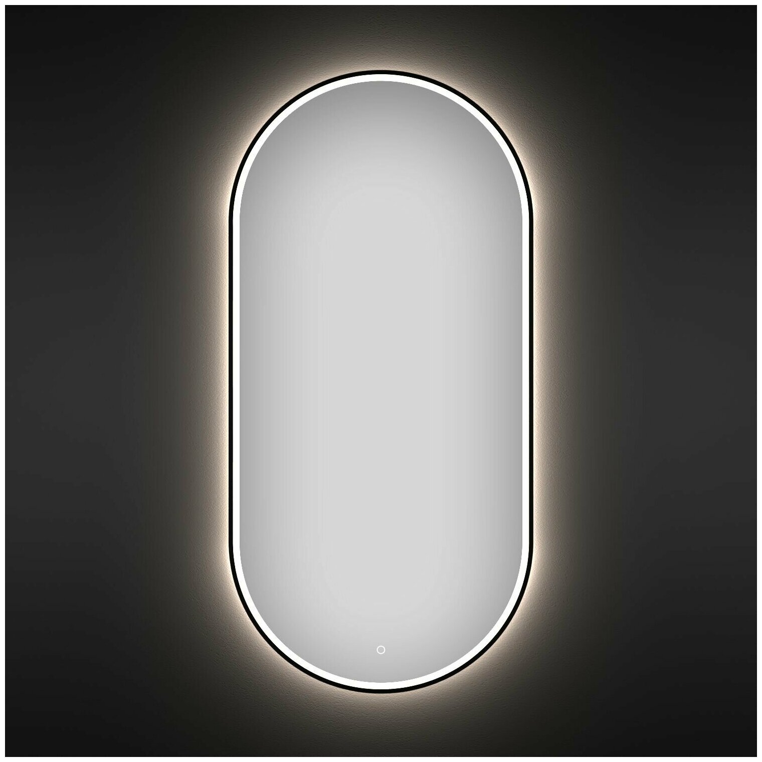Настенное зеркало в ванную с подсветкой Wellsee 7 Rays' Spectrum 172201890 : влагостойкое овальное зеркало 50х100 см с черным матовым контуром