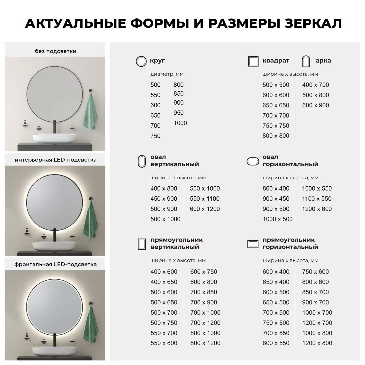 Настенное зеркало в ванную с подсветкой для макияжа Wellsee 7 Rays' Spectrum 172200200 : влагостойкое зеркало 60 см с черным матовым контуром