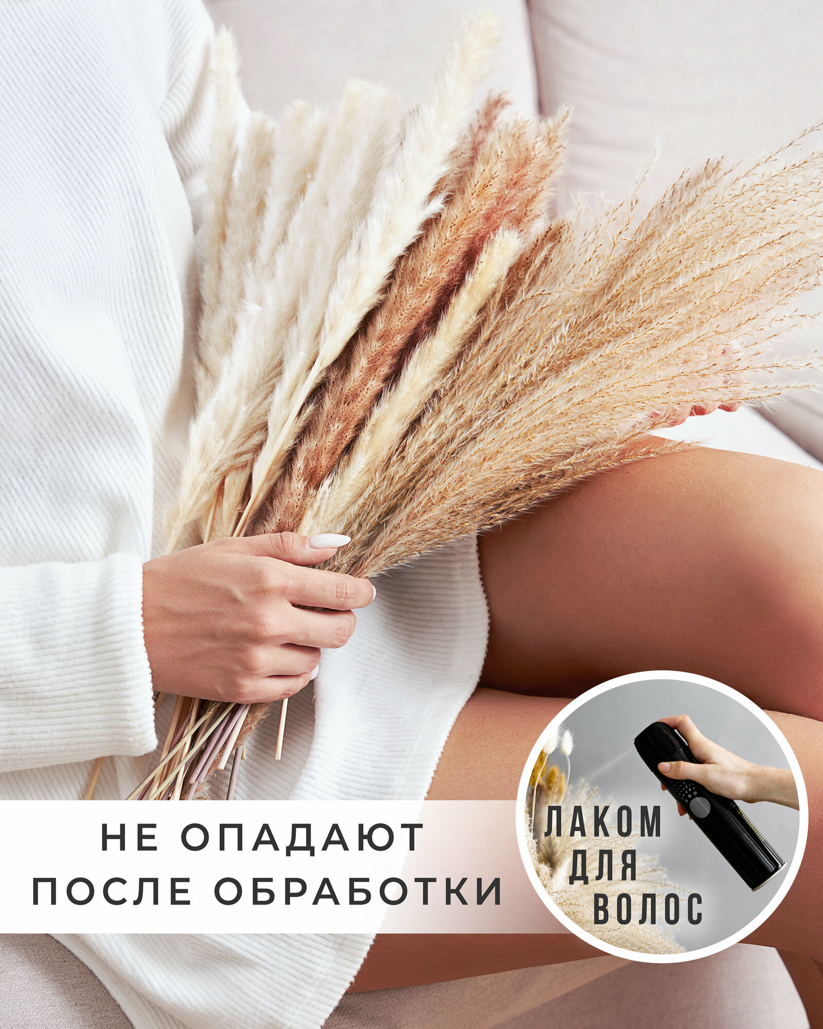 Сухоцветы букет 55см, Пампасная трава и Мискантус, 190 гр, Сухоцветы для декора ARANTA 60шт интересное: