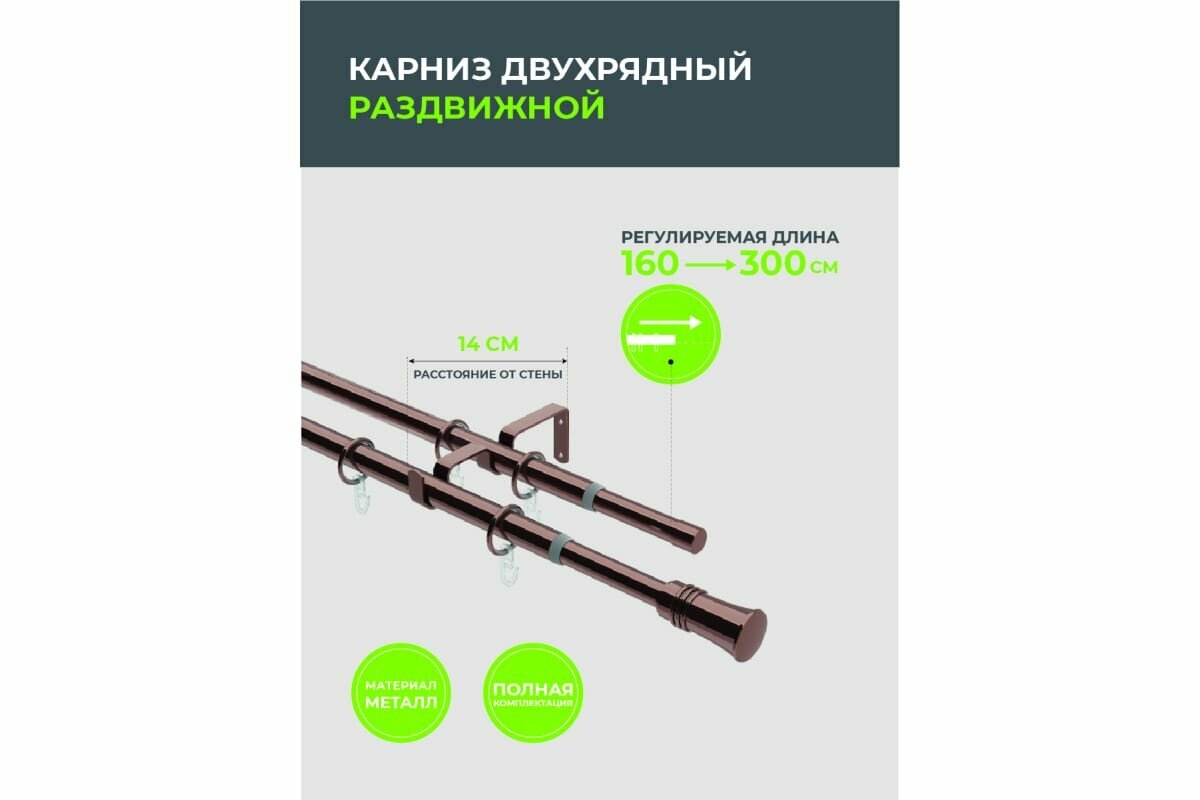 Карниз для штор раздвижной телескопический двухрядный (2 ряда) металлический 160 - 300 см Трапеция коньяк коричневый ARTTEX