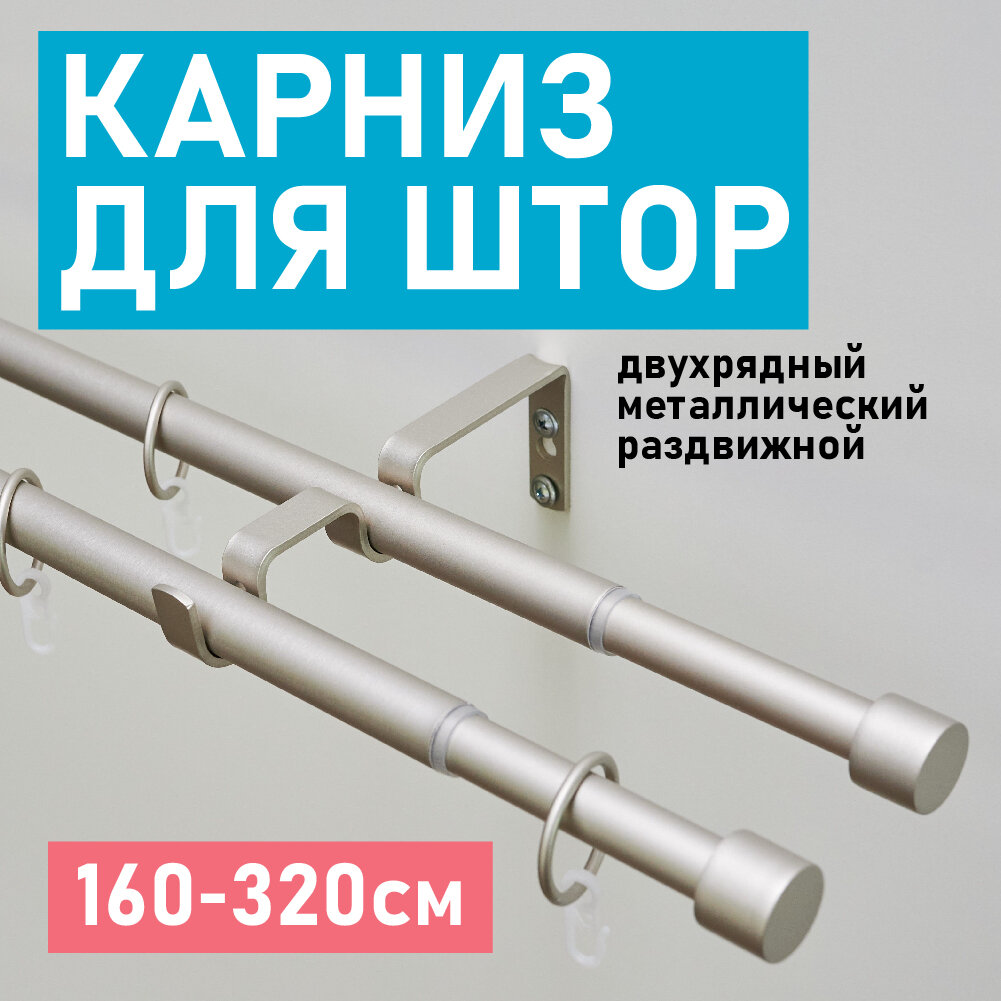 Карниз для штор Трансформер 19/16 мм двухрядный заглушка 160/320см Сталь Матовая Скин интересное: