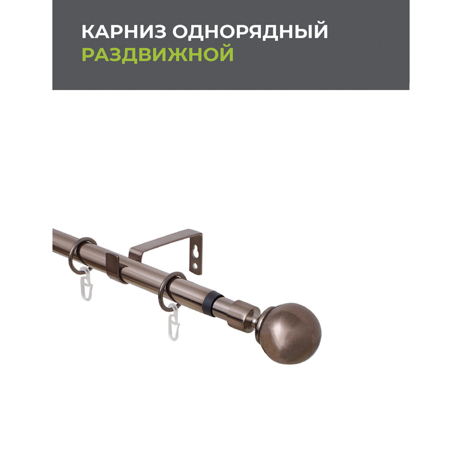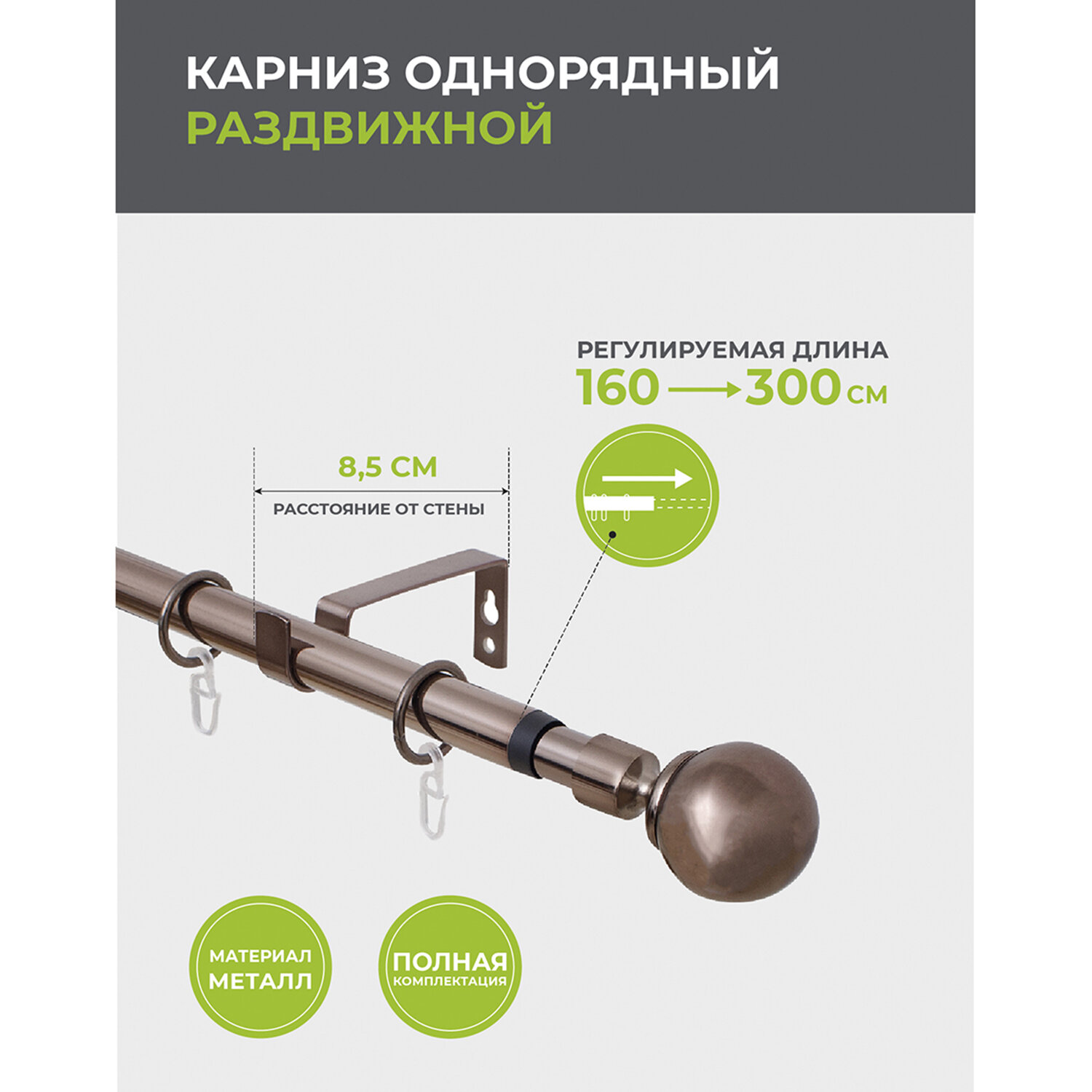 Карниз для штор раздвижной телескопический однорядный (1 ряд) металлический 160 - 300 см Заглушка хром ARTTEX