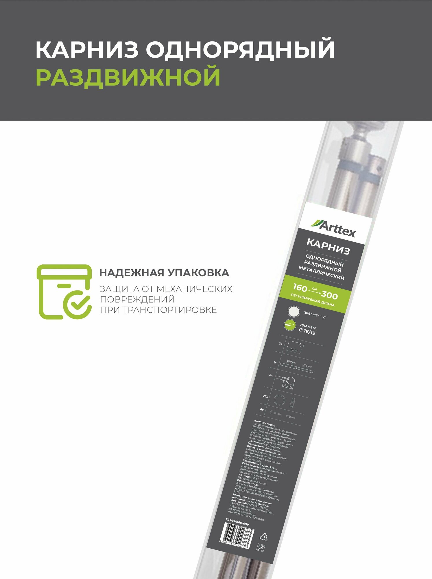 Карниз телескоп. 1-рядный arttex 160-300см 16/19мм хром матовый наконечник заглушка, арт.56.587.1