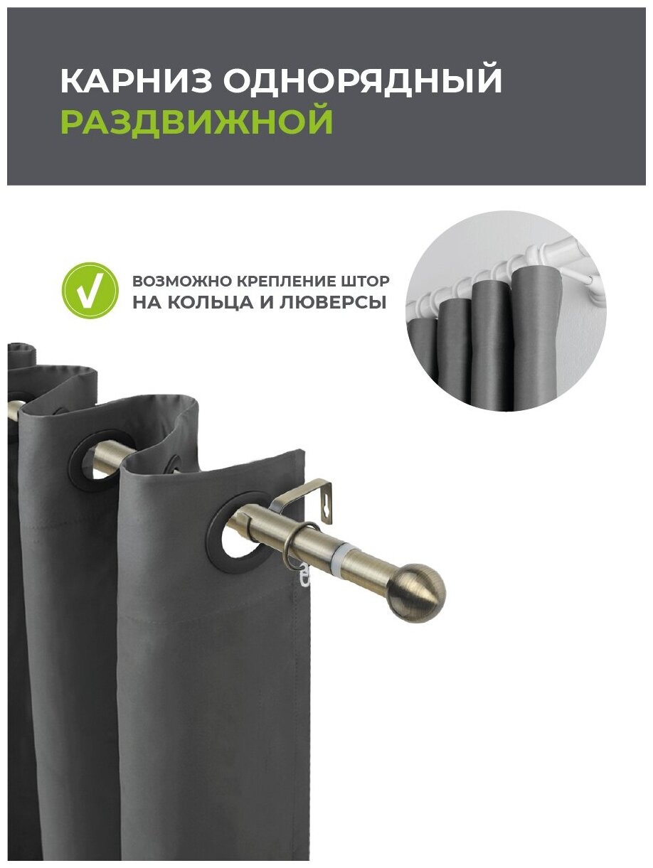 Карниз для штор раздвижной телескопический однорядный (1 ряд) металлический 160 - 300 см Заглушка хром ARTTEX